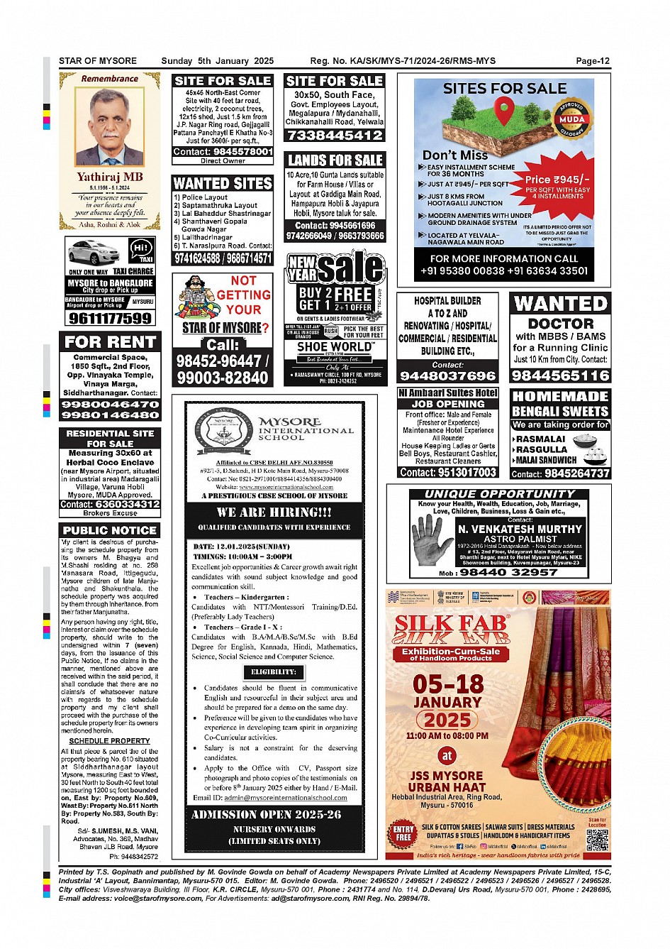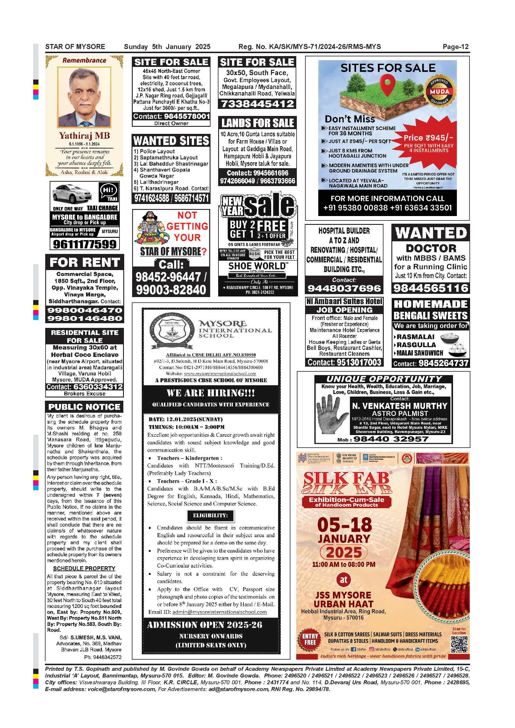 Star of Mysore Page: 11 January 05, 2025 << First << 11 >> Last >> Page 1Page 2Page 3Page 4Page 5Page 6Page 7Page 8Page 9Page 10Page 11 × Star of Mysore << First << 11 >> Last >> SOM-page-001SOM-page-002SOM-page-003SOM-page-004SOM-page-005page-006 & 007SOM-page-008SOM-page-009SOM-page-010SOM-page-011SOM-page-012 SOM-page-012
