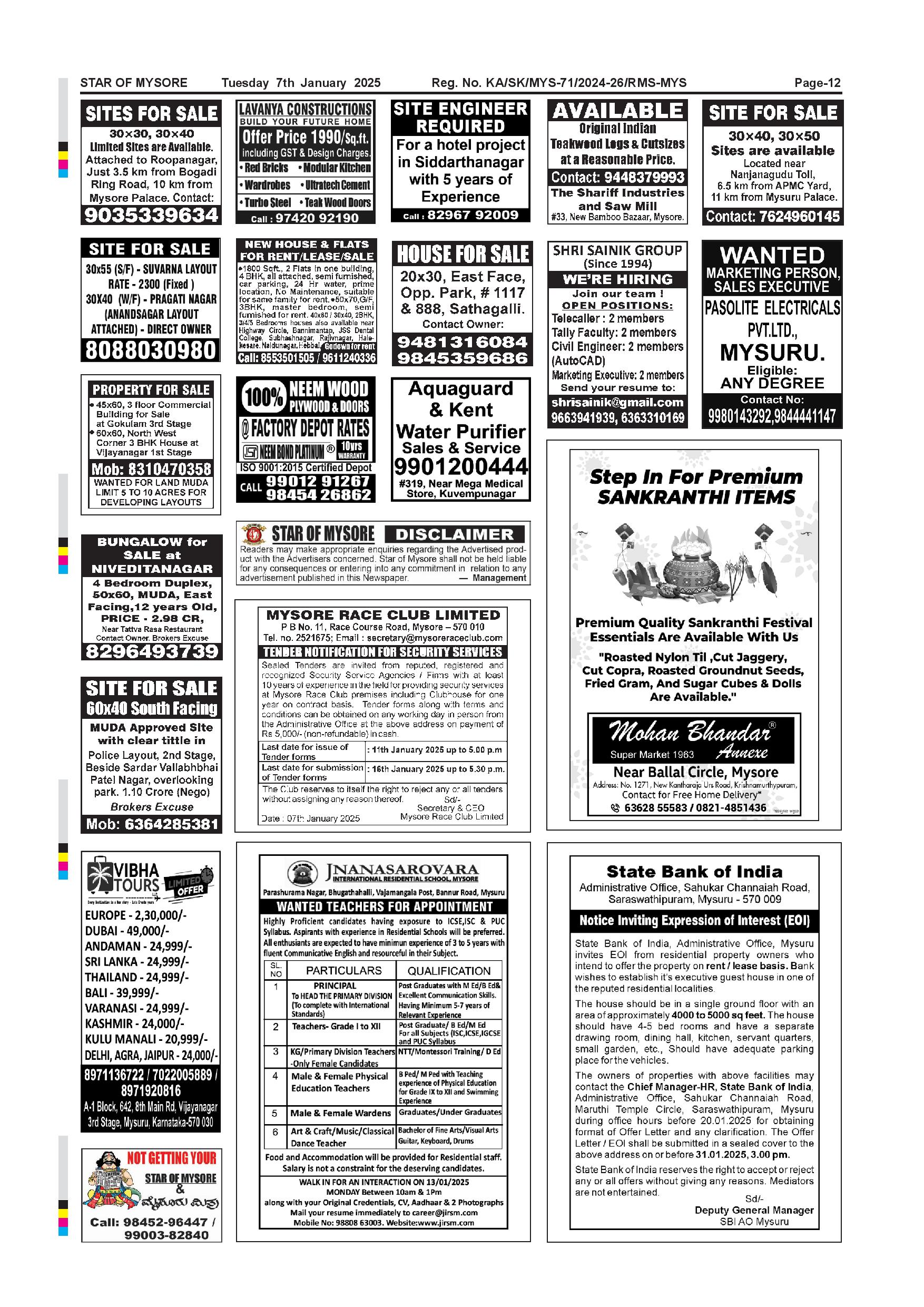 Star of Mysore Page: 12 January 07, 2025 << First << 12 >> Last >> Page 1Page 2Page 3Page 4Page 5Page 6Page 7Page 8Page 9Page 10Page 11Page 12 × Star of Mysore << First << 12 >> Last >> SOM-page-001SOM-page-002SOM-page-003SOM-page-004SOM-page-005SOM-page-006SOM-page-007SOM-page-008SOM-page-009SOM-page-010SOM-page-011SOM-page-012 SOM-page-012