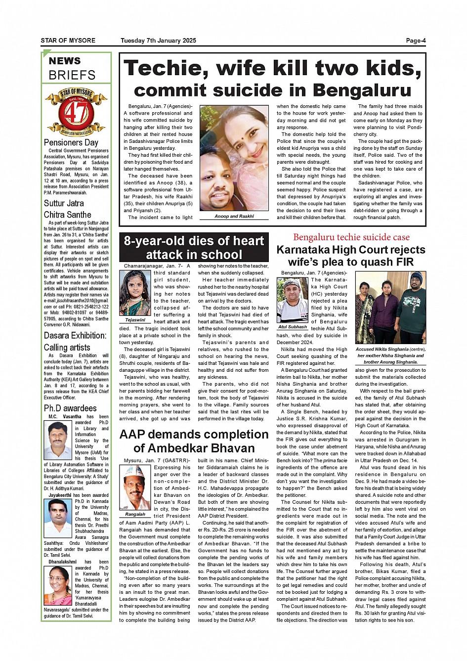 Star of Mysore Page: 4 January 07, 2025 << First << 4 >> Last >> Page 1Page 2Page 3Page 4Page 5Page 6Page 7Page 8Page 9Page 10Page 11Page 12 × Star of Mysore << First << 4 >> Last >> SOM-page-001SOM-page-002SOM-page-003SOM-page-004SOM-page-005SOM-page-006SOM-page-007SOM-page-008SOM-page-009SOM-page-010SOM-page-011SOM-page-012 SOM-page-004
