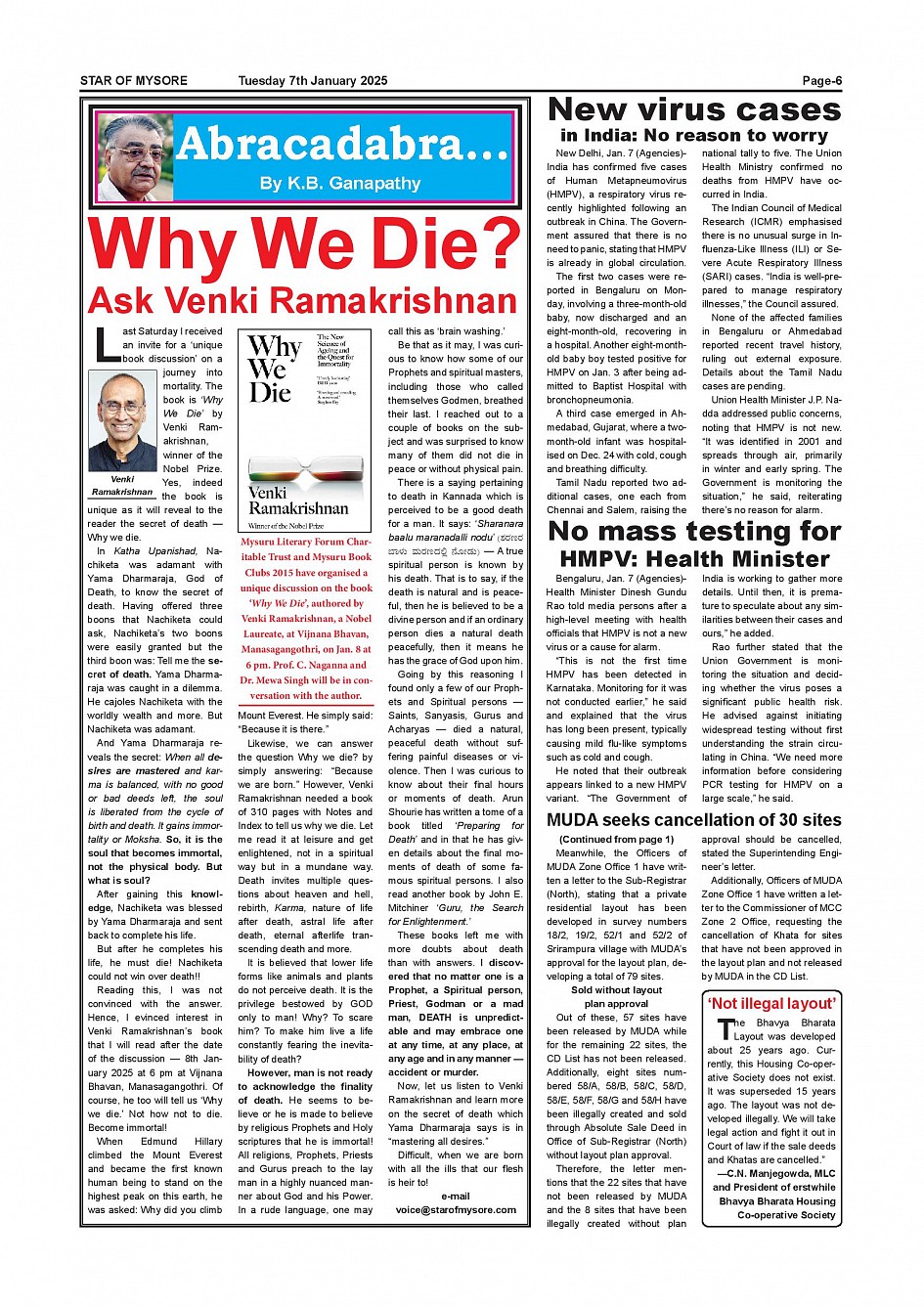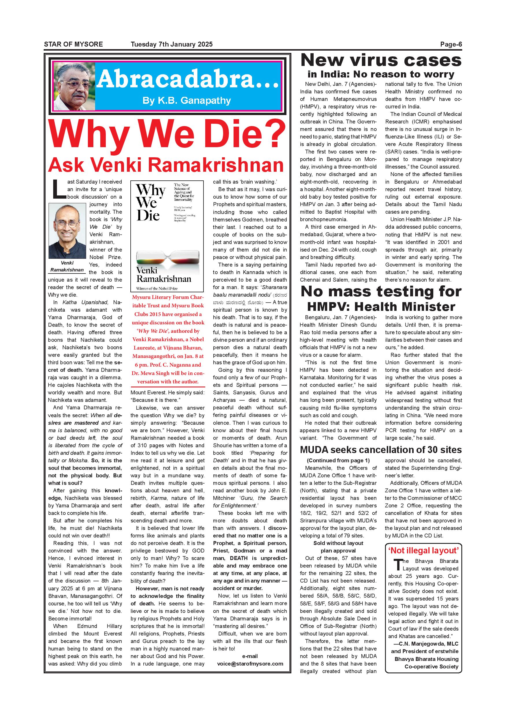 Star of Mysore Page: 6 January 07, 2025 << First << 6 >> Last >> Page 1Page 2Page 3Page 4Page 5Page 6Page 7Page 8Page 9Page 10Page 11Page 12 × Star of Mysore << First << 6 >> Last >> SOM-page-001SOM-page-002SOM-page-003SOM-page-004SOM-page-005SOM-page-006SOM-page-007SOM-page-008SOM-page-009SOM-page-010SOM-page-011SOM-page-012 SOM-page-006