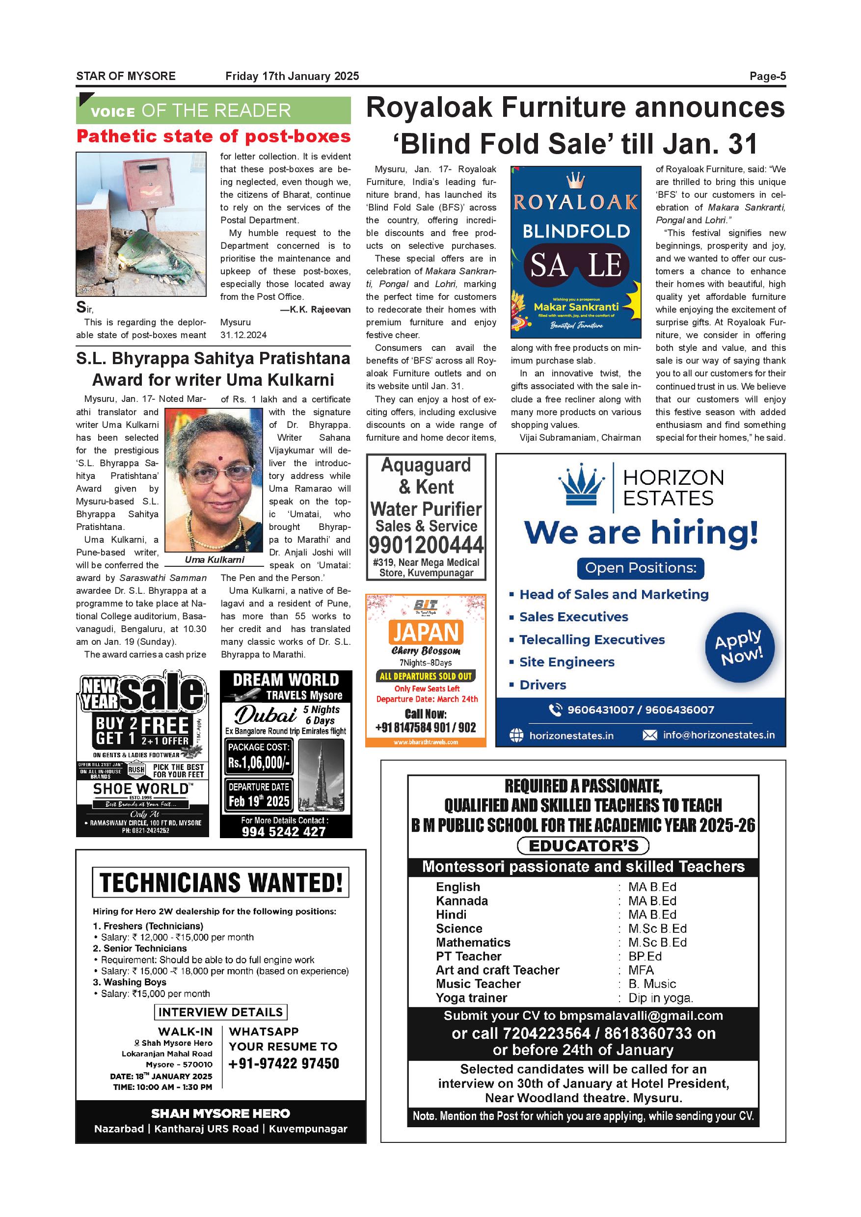 Star of Mysore Page: 5 January 17, 2025 << First << 5 >> Last >> Page 1Page 2Page 3Page 4Page 5Page 6Page 7Page 8Page 9Page 10Page 11Page 12 × Star of Mysore << First << 5 >> Last >> Page-001Page-002Page-003Page-004Page-005Page-006Page-007Page-008Page-009Page-010Page-011Page-012 Page-005