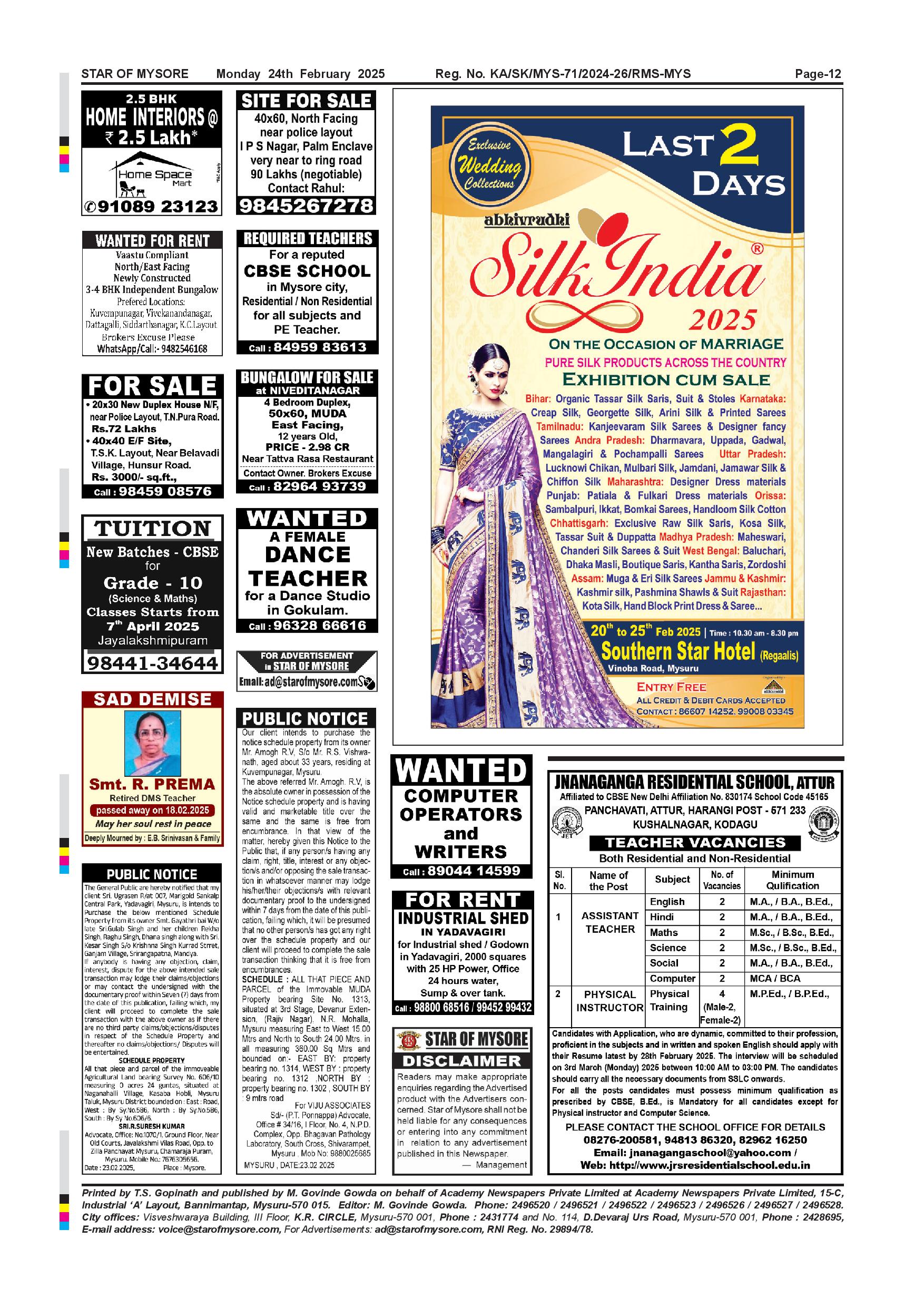 Star of Mysore Page: 12 February 24, 2025 << First << 12 >> Last >> Page 1Page 2Page 3Page 4Page 5Page 6Page 7Page 8Page 9Page 10Page 11Page 12 × Star of Mysore << First << 12 >> Last >> Page-001Page-002Page-003Page-004Page-005Page-006Page-007Page-008Page-009Page-010Page-011Page-012 Page-012
