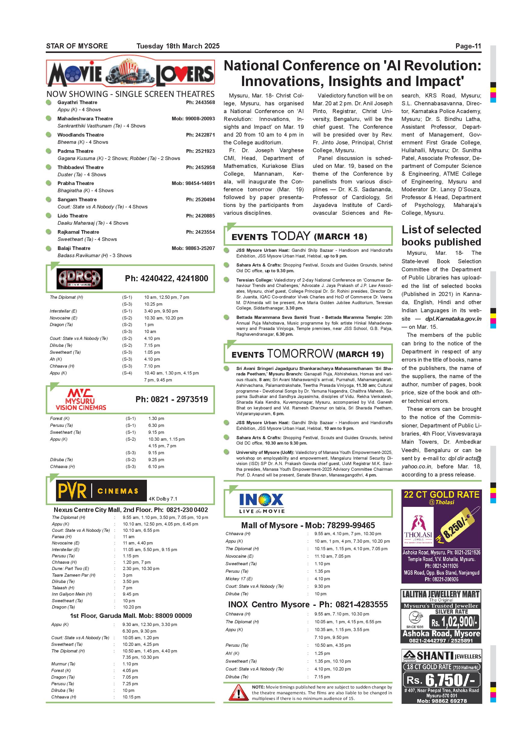 Star of Mysore Page: 11 March 18, 2025 << First << 11 >> Last >> Page 1Page 2Page 3Page 4Page 5Page 6Page 7Page 8Page 9Page 10Page 11Page 12 × Star of Mysore << First << 11 >> Last >> Page-001Page-002Page-003Page-004Page-005Page-006Page-007Page-008Page-009Page-010Page-011Page-012 Page-011