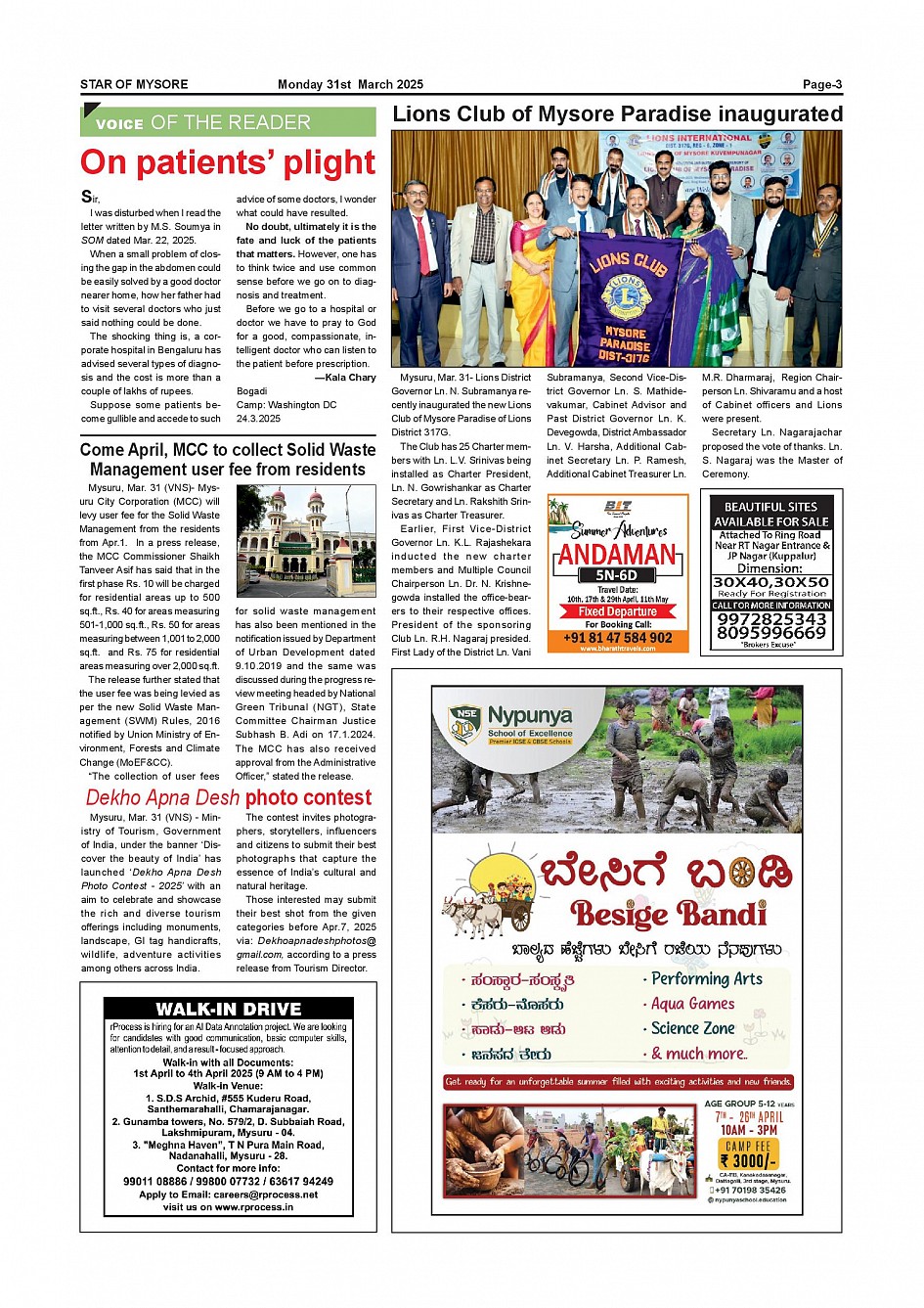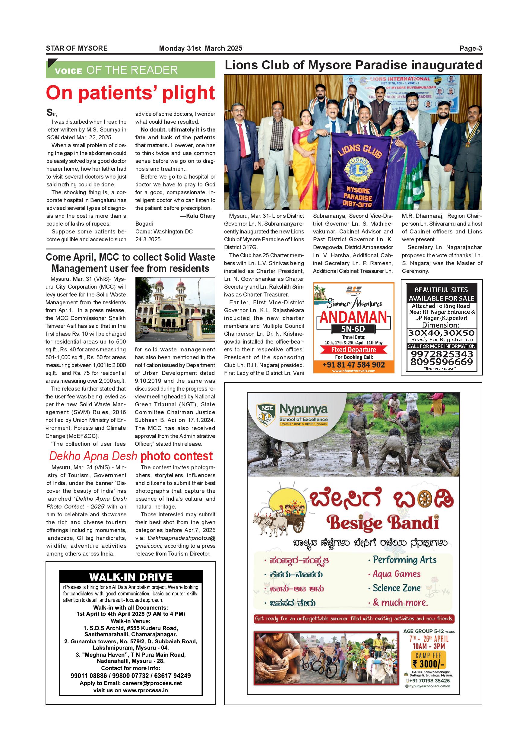 Star of Mysore Page: 3 March 31, 2025 << First << 3 >> Last >> Page 1Page 2Page 3Page 4Page 5Page 6Page 7Page 8Page 9Page 10Page 11Page 12 × Star of Mysore << First << 3 >> Last >> Page-001Page-002Page-003Page-004Page-005Page-006Page-007Page-008Page-009Page-010Page-011Page-012 Page-003