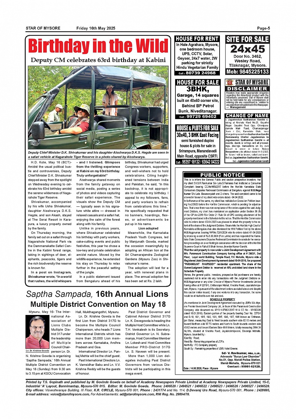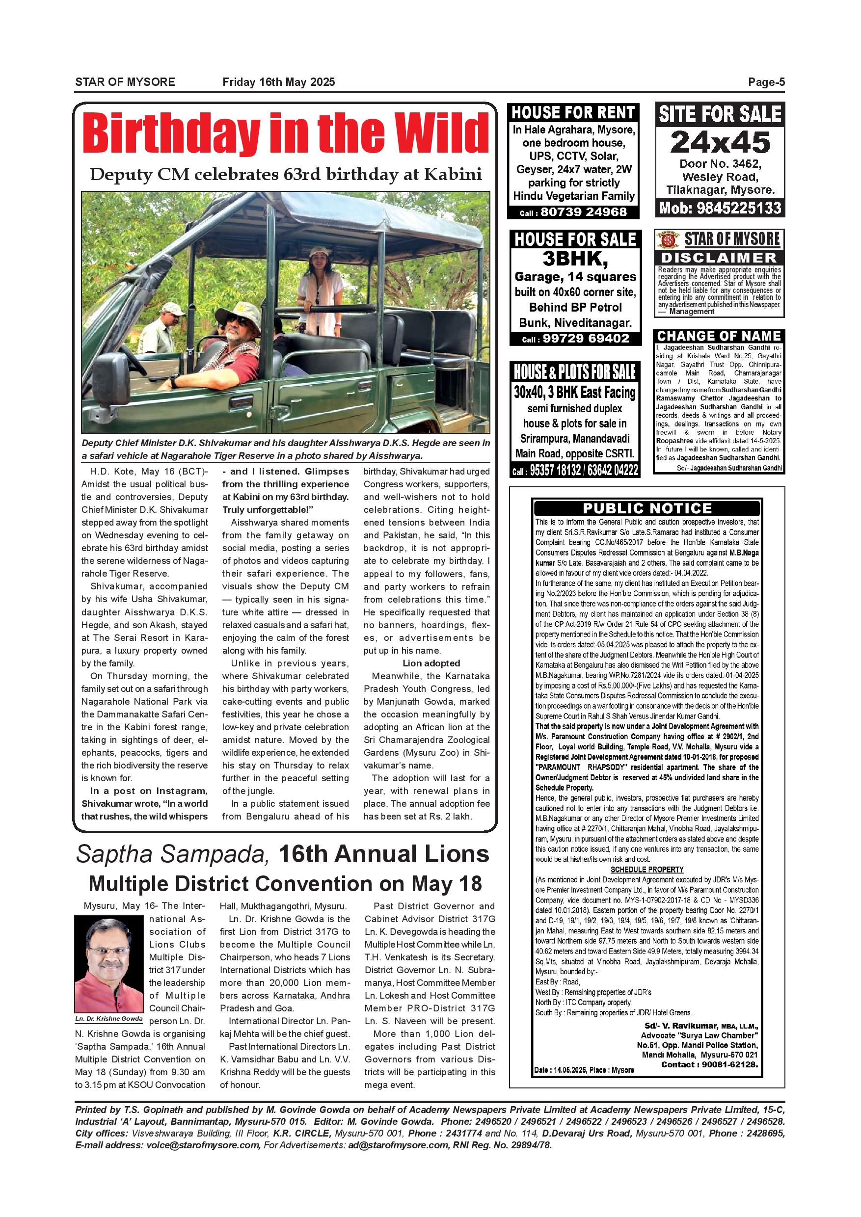 Star of Mysore Page: 5 May 16, 2025 << First << 5 >> Last >> Page 1Page 2Page 3Page 4Page 5Page 6Page 7Page 8Page 9Page 10Page 11Page 12 × Star of Mysore << First << 5 >> Last >> MAY 16-page-001MAY 16-page-002MAY 16-page-003MAY 16-page-004MAY 16-page-005MAY 16-page-006MAY 16-page-007MAY 16-page-008MAY 16-page-009MAY 16-page-010MAY 16-page-011MAY 16-page-012 MAY 16-page-005