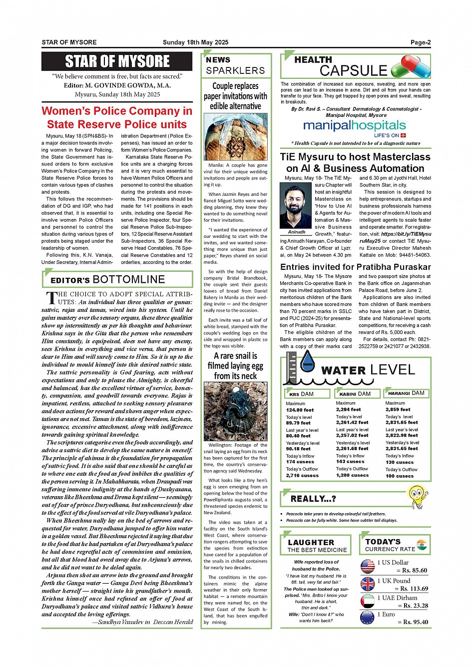 Star of Mysore Page: 2 May 18, 2025 << First << 2 >> Last >> Page 1Page 2Page 3Page 4Page 5Page 6Page 7Page 8Page 9Page 10Page 11Page 12 × Star of Mysore << First << 2 >> Last >> MAY 18-page-001MAY 18-page-002MAY 18-page-003MAY 18-page-004MAY 18-page-005MAY 18-page-006MAY 18-page-007MAY 18-page-008MAY 18-page-009MAY 18-page-010MAY 18-page-011MAY 18-page-012 MAY 18-page-002