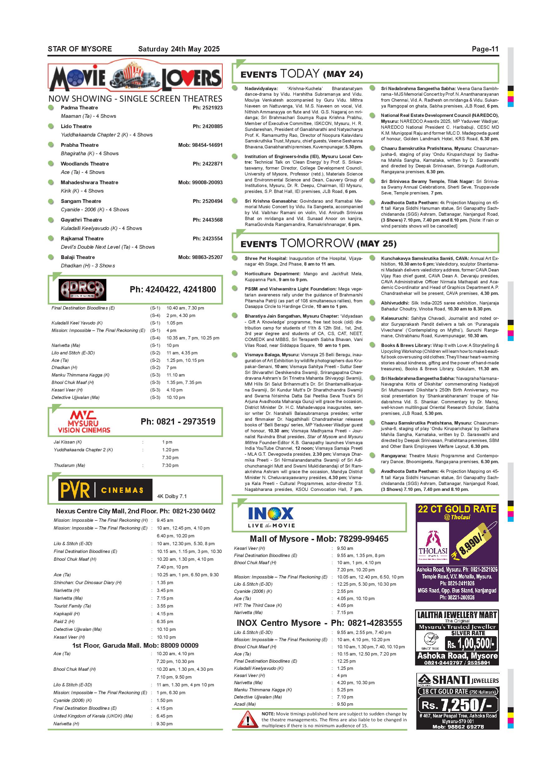 Star of Mysore Page: 11 May 24, 2025 << First << 11 >> Last >> Page 1Page 2Page 3Page 4Page 5Page 6Page 7Page 8Page 9Page 10Page 11Page 12 × Star of Mysore << First << 11 >> Last >> MAY 24-page-001MAY 24-page-002MAY 24-page-003MAY 24-page-004MAY 24-page-005MAY 24-page-006MAY 24-page-007MAY 24-page-008MAY 24-page-009MAY 24-page-010MAY 24-page-011MAY 24-page-012 MAY 24-page-011
