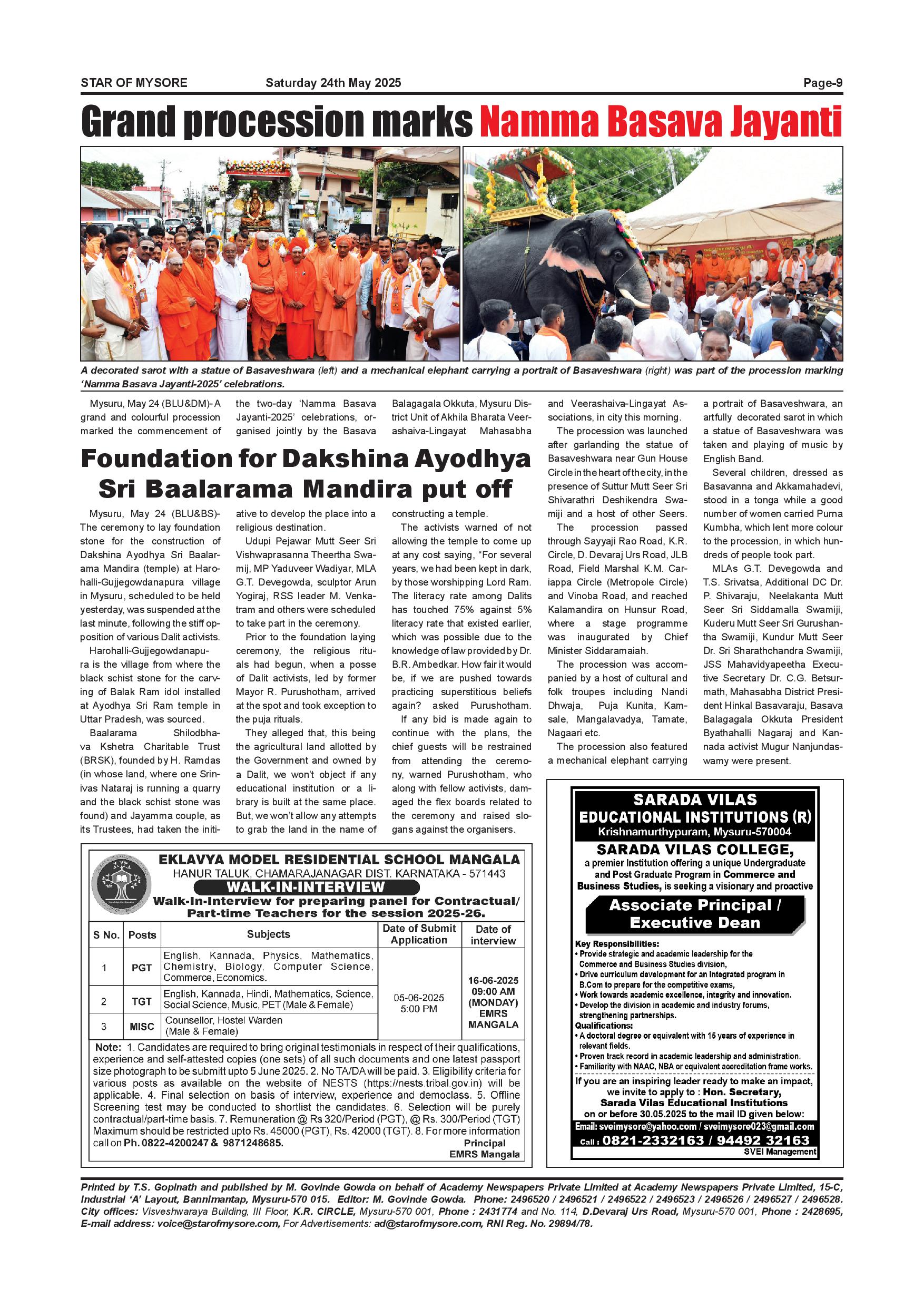Star of Mysore Page: 9 May 24, 2025 << First << 9 >> Last >> Page 1Page 2Page 3Page 4Page 5Page 6Page 7Page 8Page 9Page 10Page 11Page 12 × Star of Mysore << First << 9 >> Last >> MAY 24-page-001MAY 24-page-002MAY 24-page-003MAY 24-page-004MAY 24-page-005MAY 24-page-006MAY 24-page-007MAY 24-page-008MAY 24-page-009MAY 24-page-010MAY 24-page-011MAY 24-page-012 MAY 24-page-009