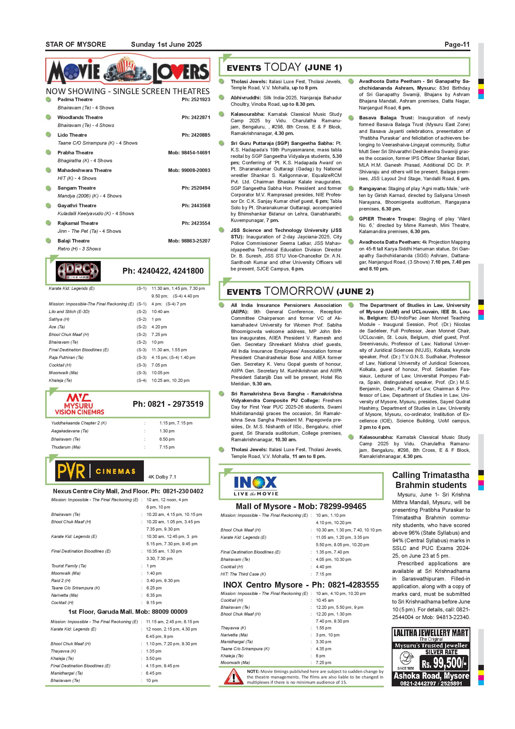 Star of Mysore Page: 11 June 01, 2025 << First << 11 >> Last >> Page 1Page 2Page 3Page 4Page 5Page 6Page 7Page 8Page 9Page 10Page 11Page 12 × Star of Mysore << First << 11 >> Last >> JUNE 1-page-001JUNE 1-page-002JUNE 1-page-003JUNE 1-page-004JUNE 1-page-005JUNE 1-page-006JUNE 1-page-007JUNE 1-page-008JUNE 1-page-009JUNE 1-page-010JUNE 1-page-011JUNE 1-page-012 JUNE 1-page-011