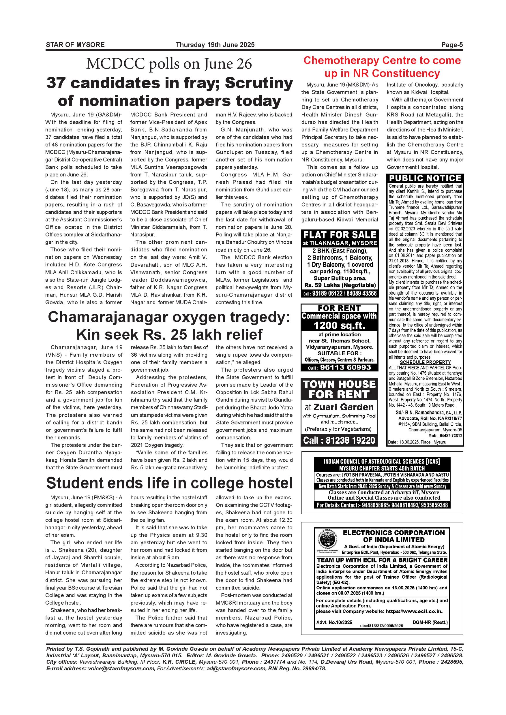Star of Mysore Page: 5 June 19, 2025 << First << 5 >> Last >> Page 1Page 2Page 3Page 4Page 5Page 6Page 7Page 8Page 9Page 10Page 11Page 12 × Star of Mysore << First << 5 >> Last >> Page-001Page-002Page-003Page-004Page-005Page-006Page-007Page-008Page-009Page-010Page-011Page-012 Page-005
