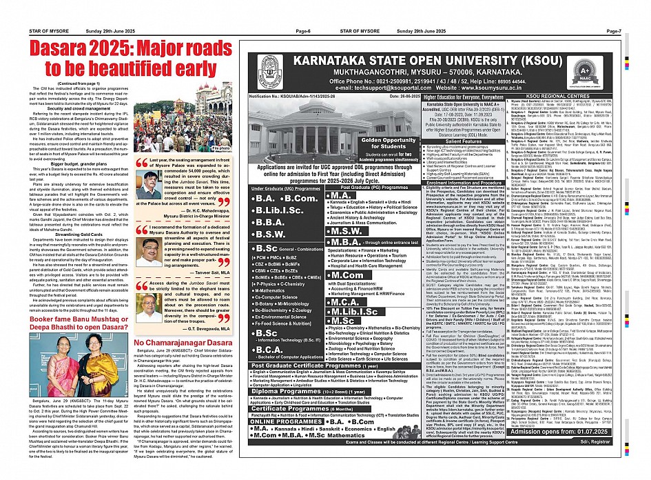 Star of Mysore Page: 6 June 29, 2025 << First << 6 >> Last >> Page 1Page 2Page 3Page 4Page 5Page 6Page 7Page 8Page 9Page 10Page 11 × Star of Mysore << First << 6 >> Last >> JUNE 29-page-001JUNE 29-page-002JUNE 29-page-003JUNE 29-page-004JUNE 29-page-005JUNE 29-page-006-007JUNE 29-page-008JUNE 29-page-009JUNE 29-page-010JUNE 29-page-011JUNE 29-page-012 JUNE 29-page-006-007