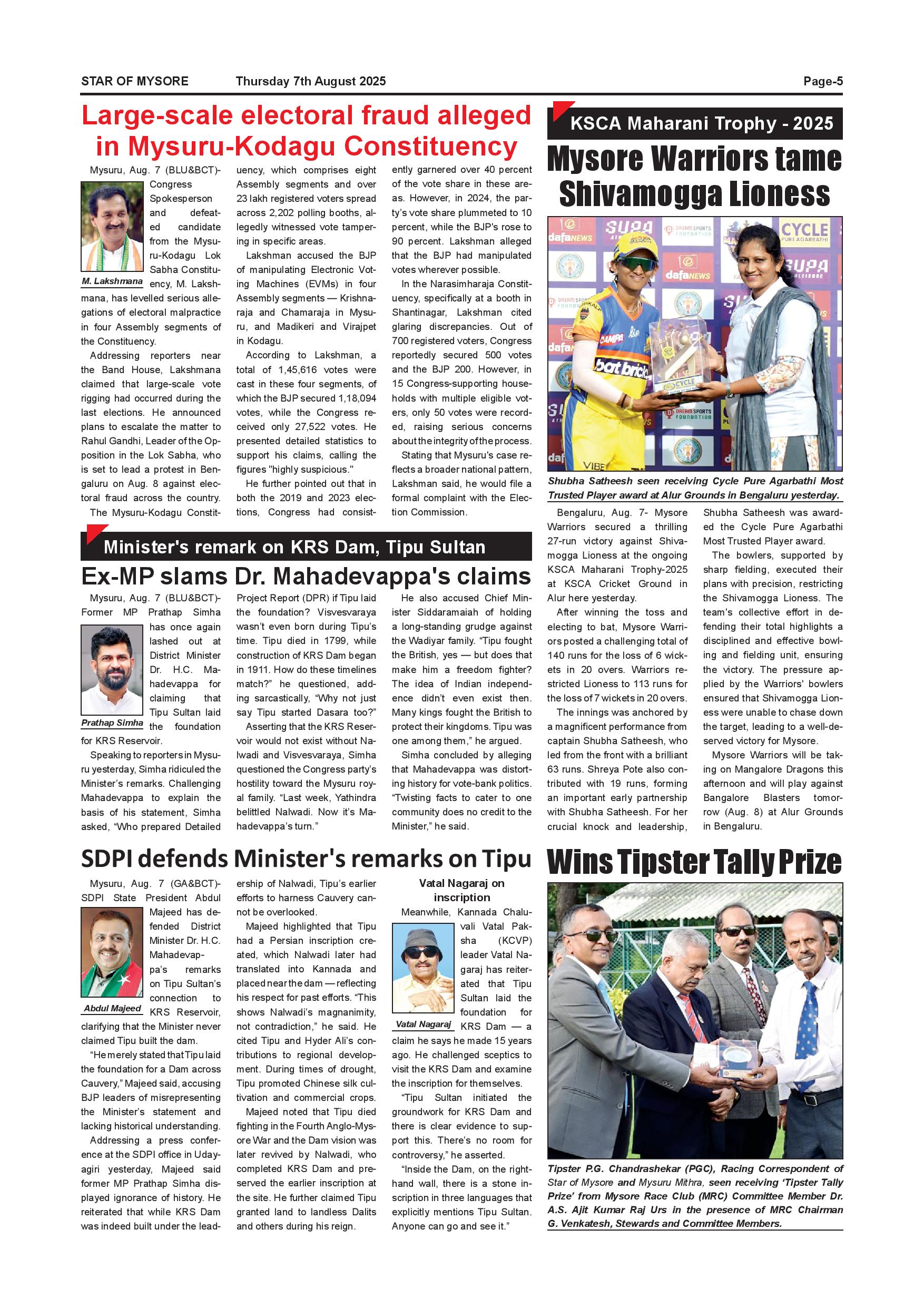 Star of Mysore Page: 5 August 07, 2025 << First << 5 >> Last >> Page 1Page 2Page 3Page 4Page 5Page 6Page 7Page 8Page 9Page 10Page 11Page 12 × Star of Mysore << First << 5 >> Last >> Aug-7-page-001Aug-7-page-002Aug-7-page-003Aug-7-page-004Aug-7-page-005Aug-7-page-006Aug-7-page-007Aug-7-page-008Aug-7-page-009Aug-7-page-010Aug-7-page-011Aug-7-page-012 Aug-7-page-005