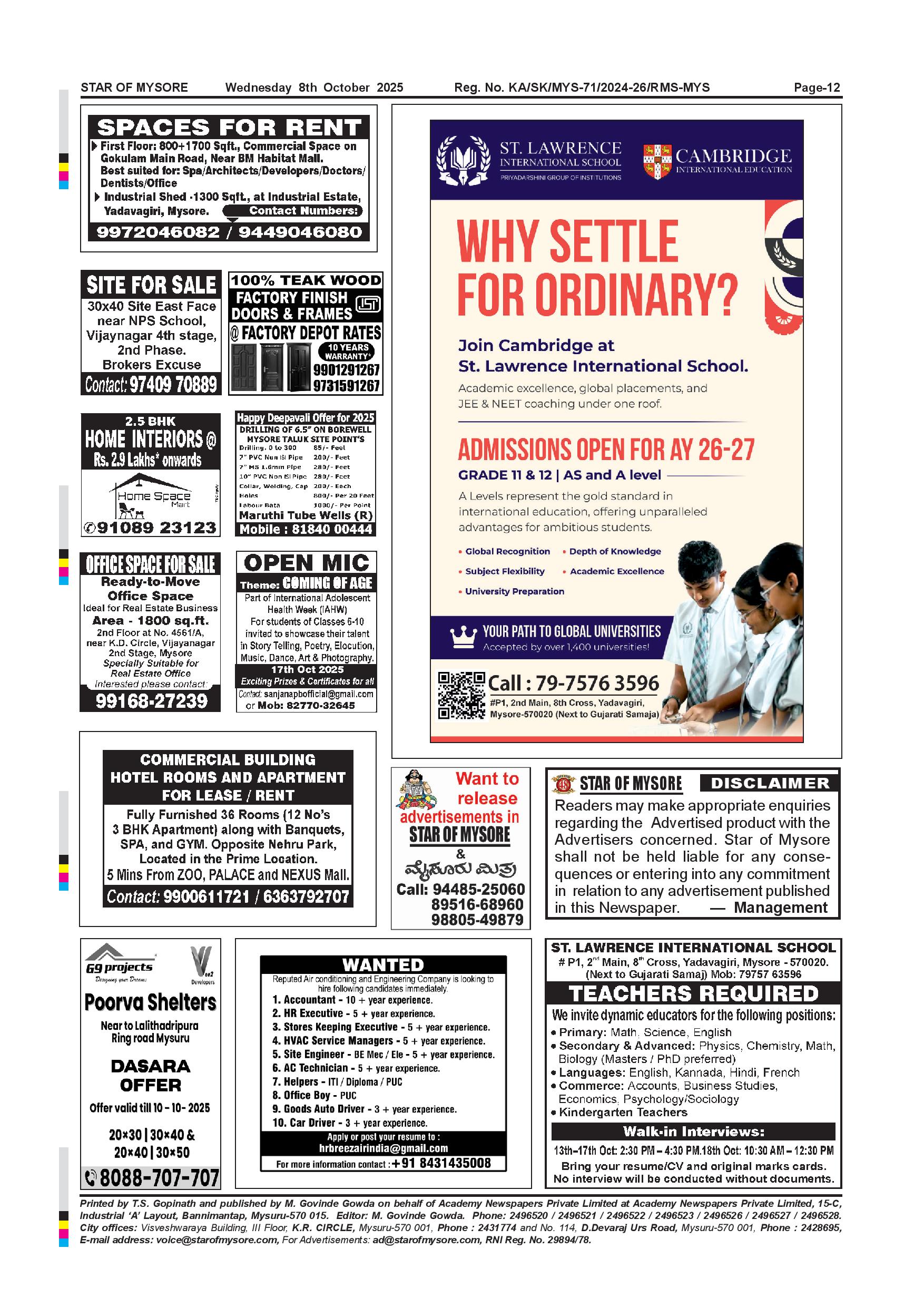 Star of Mysore Page: 12 October 08, 2025 << First << 12 >> Last >> Page 1Page 2Page 3Page 4Page 5Page 6Page 7Page 8Page 9Page 10Page 11Page 12 × Star of Mysore << First << 12 >> Last >> Page-1Page-2Page-3Page-4Page-5Page-6Page-7Page-8Page-9Page-10Page-11Page-12 Page-12