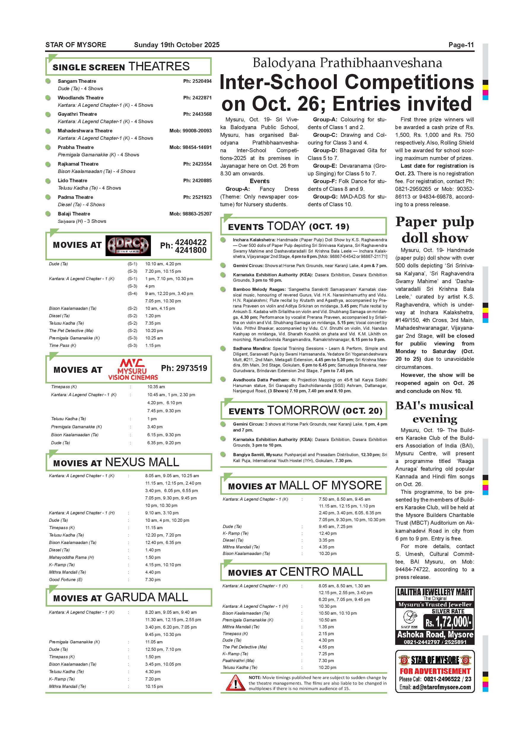 Star of Mysore Page: 11 October 19, 2025 << First << 11 >> Last >> Page 1Page 2Page 3Page 4Page 5Page 6Page 7Page 8Page 9Page 10Page 11Page 12 × Star of Mysore << First << 11 >> Last >> Page-1Page-2Page-3Page-4Page-5Page-6Page-7Page-8Page-9Page-10Page-11Page-12 Page-11