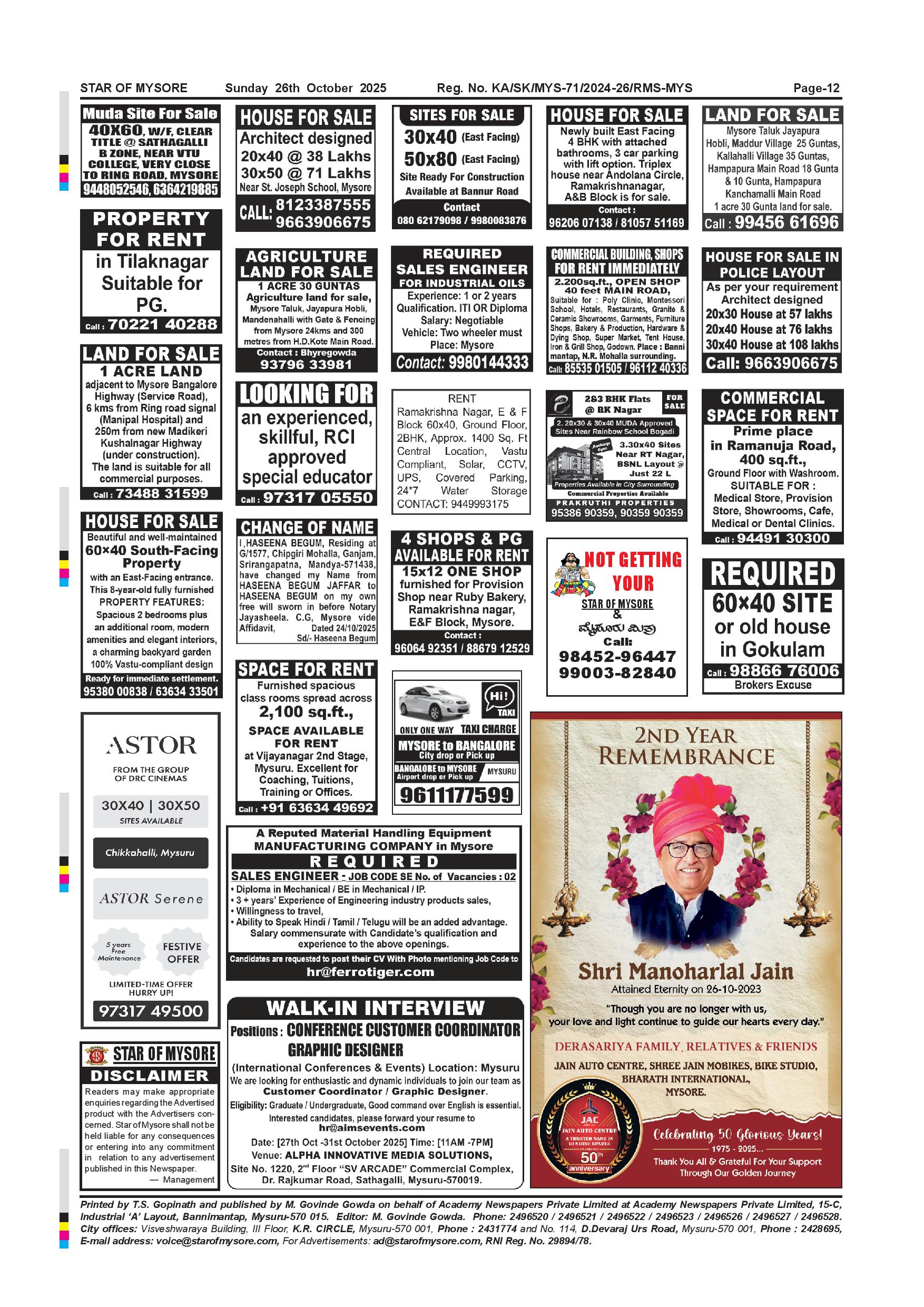 Star of Mysore Page: 12 October 26, 2025 << First << 12 >> Last >> Page 1Page 2Page 3Page 4Page 5Page 6Page 7Page 8Page 9Page 10Page 11Page 12 × Star of Mysore << First << 12 >> Last >> Page-1Page-2Page-3Page-4Page-5Page-6Page-7Page-08Page-09Page-10Page-11Page-12 Page-12