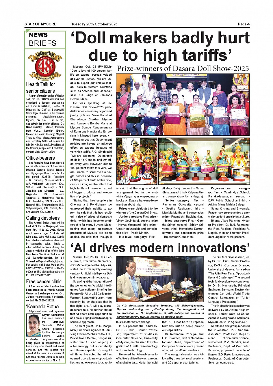 Star of Mysore Page: 4 October 28, 2025 << First << 4 >> Last >> Page 1Page 2Page 3Page 4Page 5Page 6Page 7Page 8Page 9Page 10Page 11 × Star of Mysore << First << 4 >> Last >> Page-001Page-002Page-003Page-004Page-005Page-006-007Page-008Page-009Page-010Page-011Page-012 Page-004