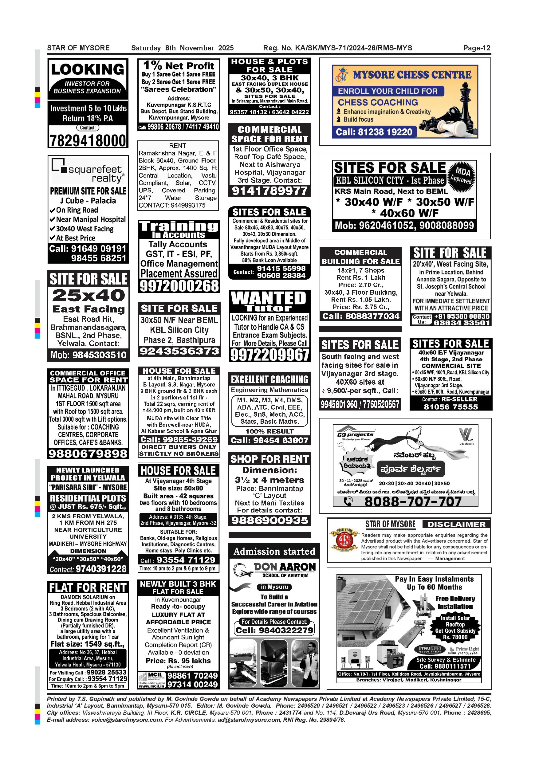 Star of Mysore Page: 12 November 08, 2025 << First << 12 >> Last >> Page 1Page 2Page 3Page 4Page 5Page 6Page 7Page 8Page 9Page 10Page 11Page 12 × Star of Mysore << First << 12 >> Last >> Page-001Page-002Page-003Page-004Page-005Page-006Page-007Page-008Page-009Page-010Page-011Page-012 Page-012