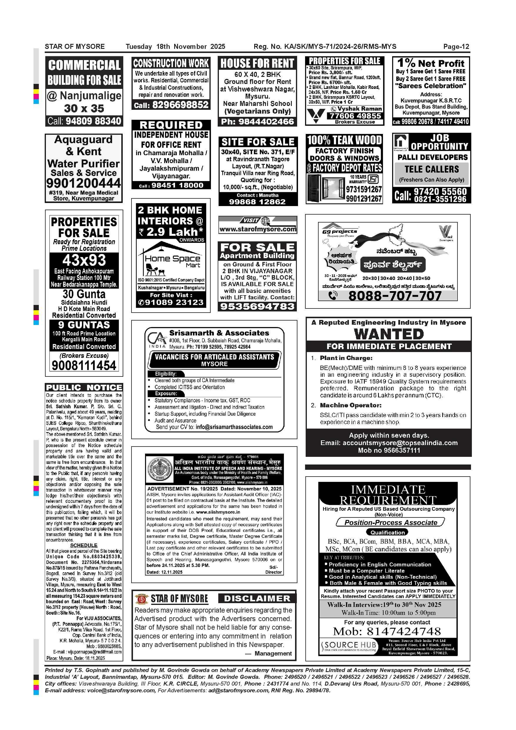 Star of Mysore Page: 12 November 18, 2025 << First << 12 >> Last >> Page 1Page 2Page 3Page 4Page 5Page 6Page 7Page 8Page 9Page 10Page 11Page 12 × Star of Mysore << First << 12 >> Last >> Nov 18-page-001Nov 18-page-002Nov 18-page-003Nov 18-page-004Nov 18-page-005Nov 18-page-006Nov 18-page-007Nov 18-page-008Nov 18-page-009Nov 18-page-010Nov 18-page-011Nov 18-page-012 Nov 18-page-012