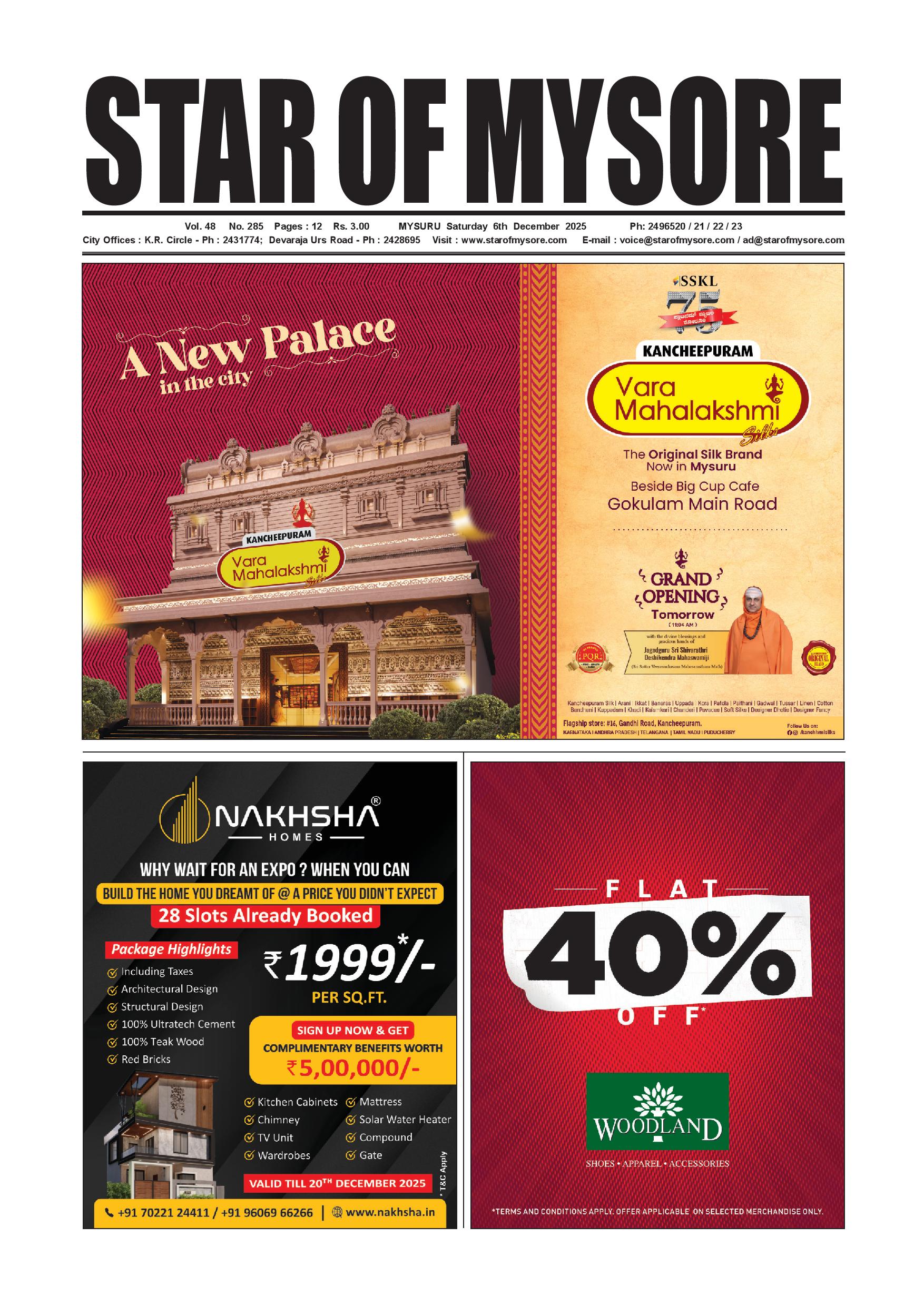 Star of Mysore December 06, 2025 << First << 1 >> Last >> Page 1Page 2Page 3Page 4Page 5Page 6Page 7Page 8Page 9Page 10Page 11Page 12 × Star of Mysore << First << 1 >> Last >> Dec-6-page-001Dec-6-page-002Dec-6-page-003Dec-6-page-004Dec-6-page-005Dec-6-page-006Dec-6-page-007Dec-6-page-008Dec-6-page-009Dec-6-page-010Dec-6-page-011Dec-6-page-012 Dec-6-page-001
