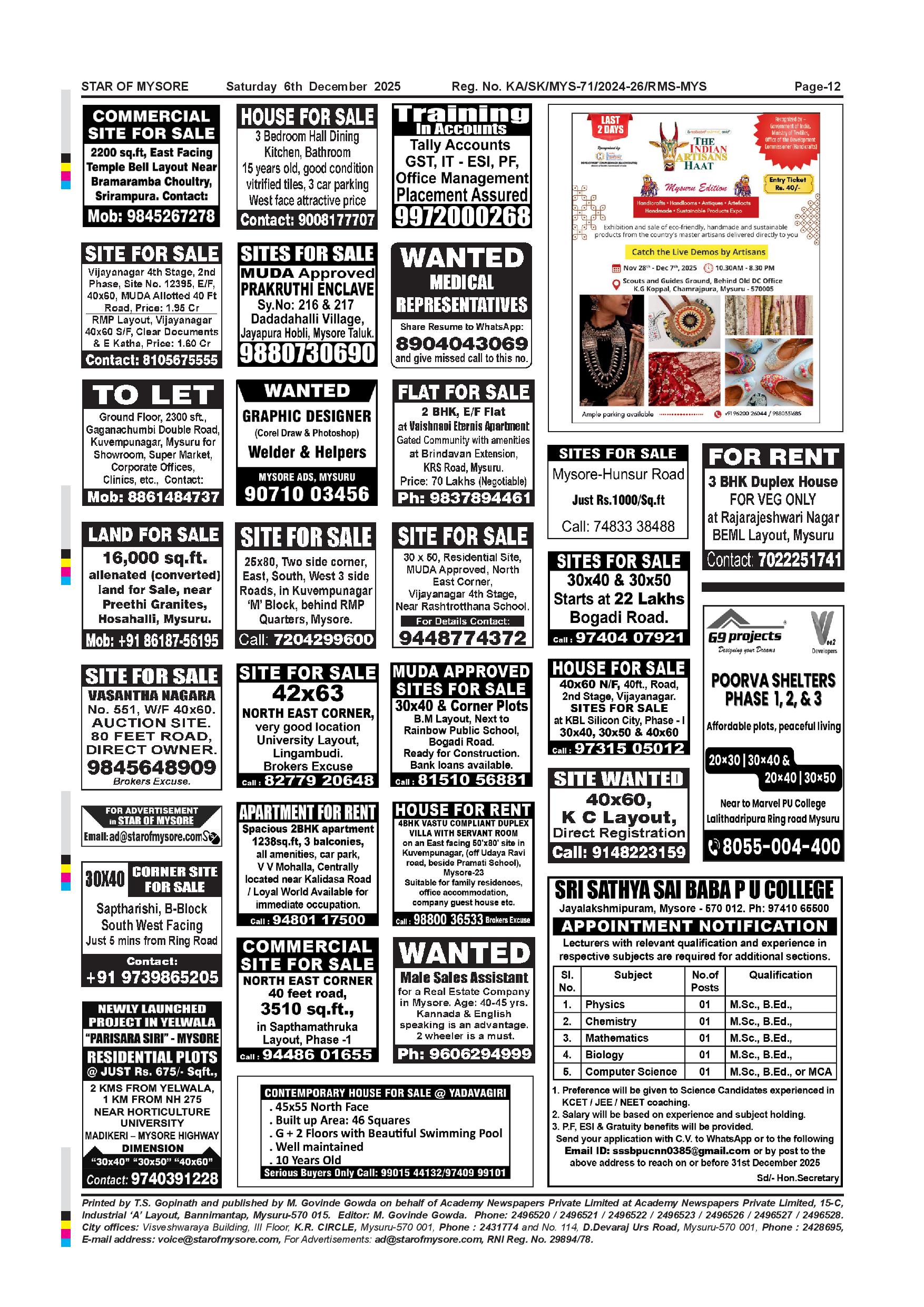 Star of Mysore Page: 12 December 06, 2025 << First << 12 >> Last >> Page 1Page 2Page 3Page 4Page 5Page 6Page 7Page 8Page 9Page 10Page 11Page 12 × Star of Mysore << First << 12 >> Last >> Dec-6-page-001Dec-6-page-002Dec-6-page-003Dec-6-page-004Dec-6-page-005Dec-6-page-006Dec-6-page-007Dec-6-page-008Dec-6-page-009Dec-6-page-010Dec-6-page-011Dec-6-page-012 Dec-6-page-012