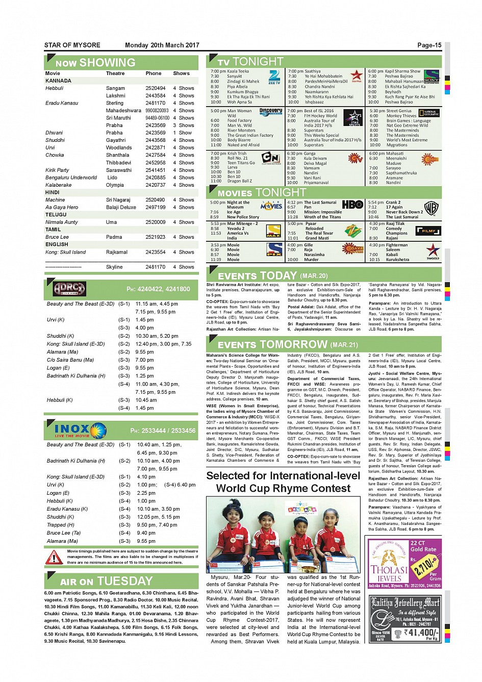 Star of Mysore Page: 15 March 20, 2017 << First << 15 >> Last >> Page 1Page 2Page 3Page 4Page 5Page 6Page 7Page 8Page 9Page 10Page 11Page 12Page 13Page 14Page 15Page 16 × Star of Mysore << First << 15 >> Last >> page-001page-002page-003page-004page-005page-006page-007page-008page-009page-010page-011page-012page-013page-014page-015page-016 page-015