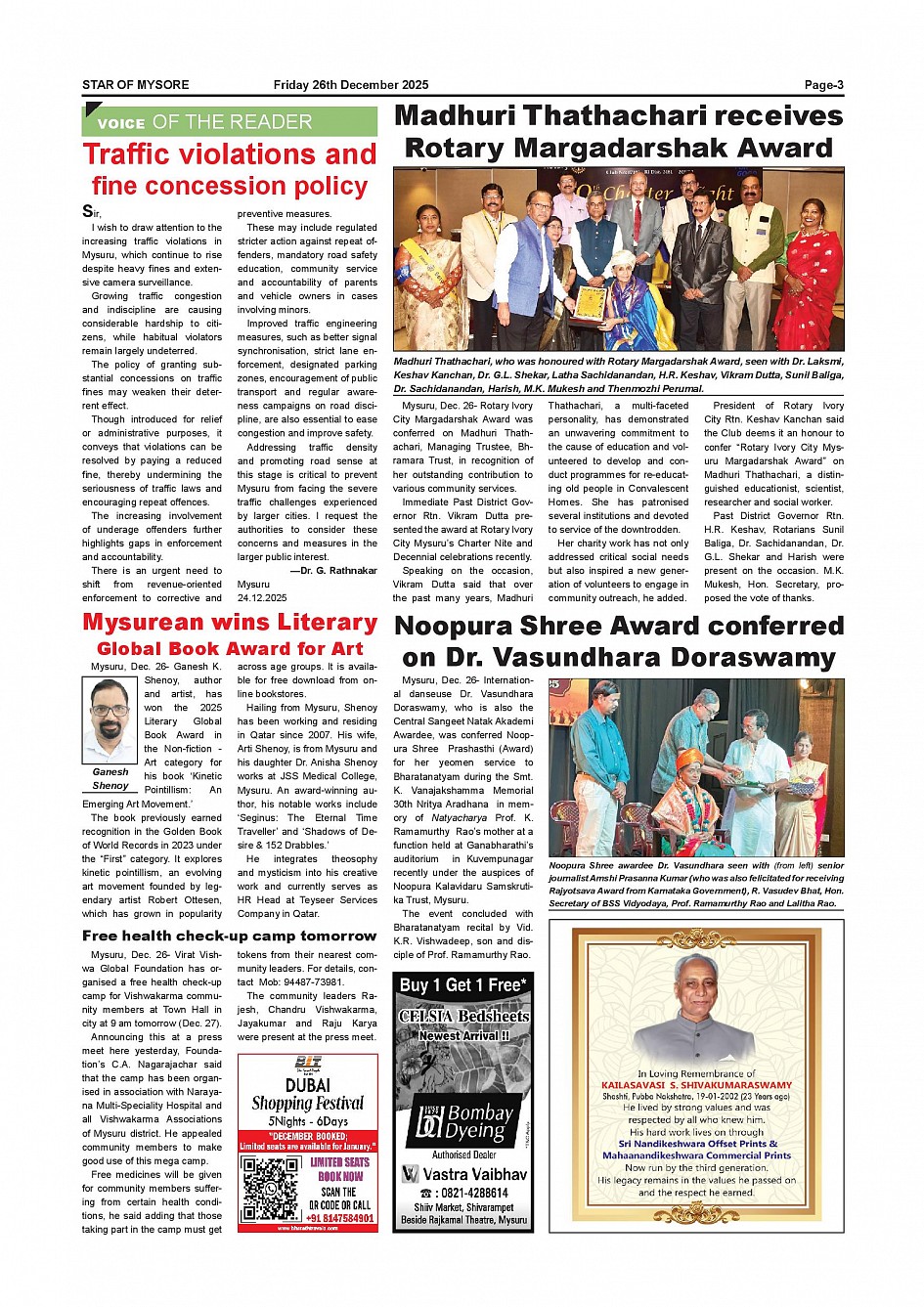 Star of Mysore Page: 3 December 26, 2025 << First << 3 >> Last >> Page 1Page 2Page 3Page 4Page 5Page 6Page 7Page 8Page 9Page 10Page 11Page 12 × Star of Mysore << First << 3 >> Last >> Dec-26-page-001Dec-26-page-002Dec-26-page-003Dec-26-page-004Dec-26-page-005Dec-26-page-006Dec-26-page-007Dec-26-page-008Dec-26-page-009Dec-26-page-010Dec-26-page-011Dec-26-page-012 Dec-26-page-003