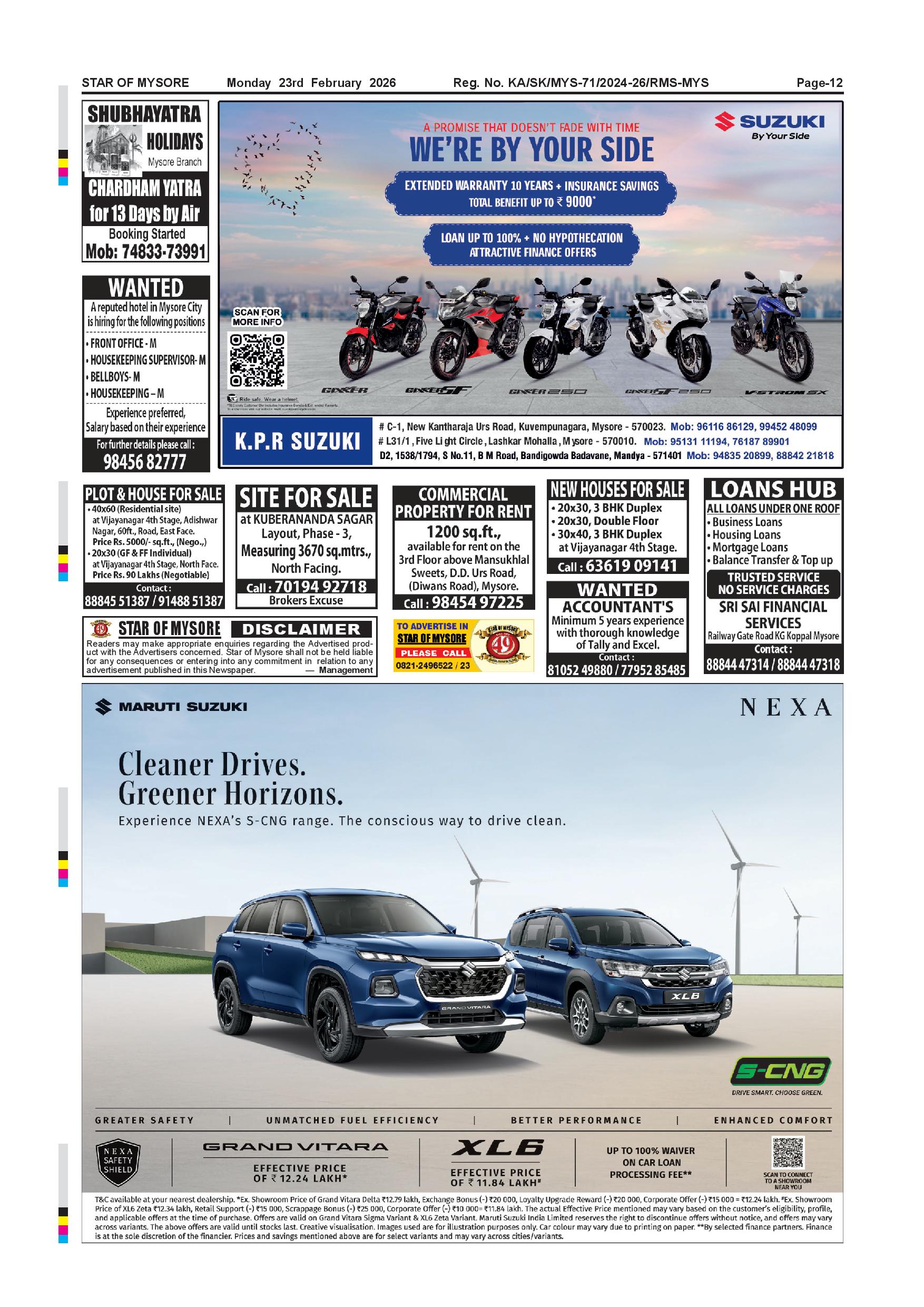 Star of Mysore Page: 12 February 23, 2026 << First << 12 >> Last >> Page 1Page 2Page 3Page 4Page 5Page 6Page 7Page 8Page 9Page 10Page 11Page 12 × Star of Mysore << First << 12 >> Last >> Feb.23-page-001Feb.23-page-002Feb.23-page-003Feb.23-page-004Feb.23-page-005Feb.23-page-006Feb.23-page-007Feb.23-page-008Feb.23-page-009Feb.23-page-010Feb.23-page-011Feb.23-page-012 Feb.23-page-012