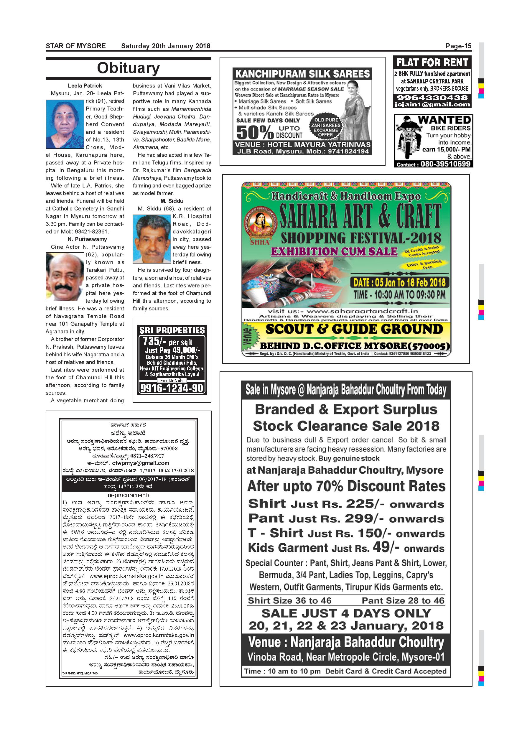 Star of Mysore Page: 14 January 20, 2018 << First << 14 >> Last >> Page 1Page 2Page 3Page 4Page 5Page 6Page 7Page 8Page 9Page 10Page 11Page 12Page 13Page 14Page 15Page 16Page 17Page 18Page 19 × Star of Mysore << First << 14 >> Last >> page-001page-002page-003page-004page-005page-006page-007page-008page-009page-010 & 011page-012page-013page-014page-015page-016page-017page-018page-019page-020 page-015
