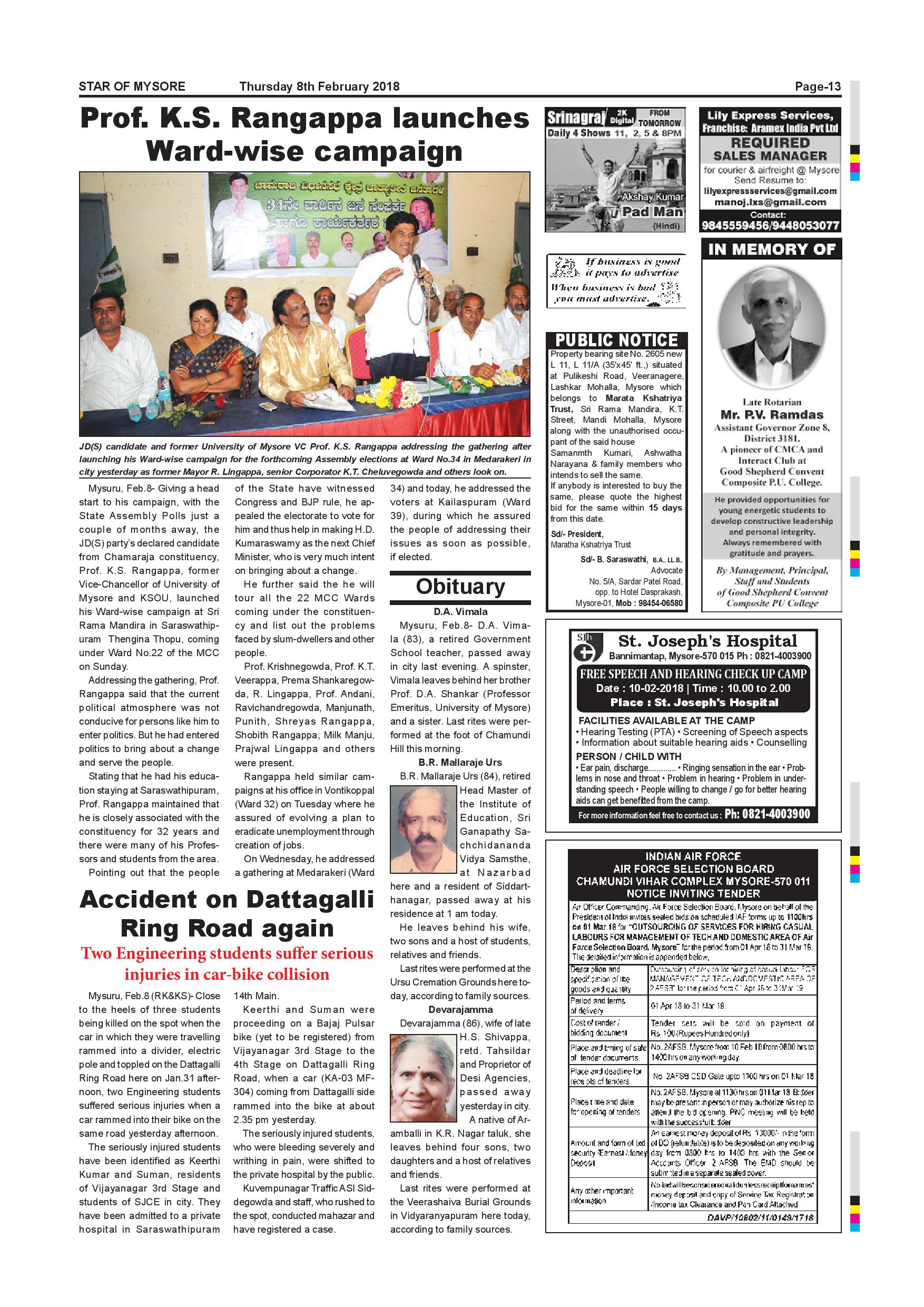 Star of Mysore Page: 13 February 08, 2018 << First << 13 >> Last >> Page 1Page 2Page 3Page 4Page 5Page 6Page 7Page 8Page 9Page 10Page 11Page 12Page 13Page 14Page 15Page 16 × Star of Mysore << First << 13 >> Last >> page-001page-002page-003page-004page-005page-006page-007page-008page-009page-010page-011page-012page-013page-014page-015page-016 page-013