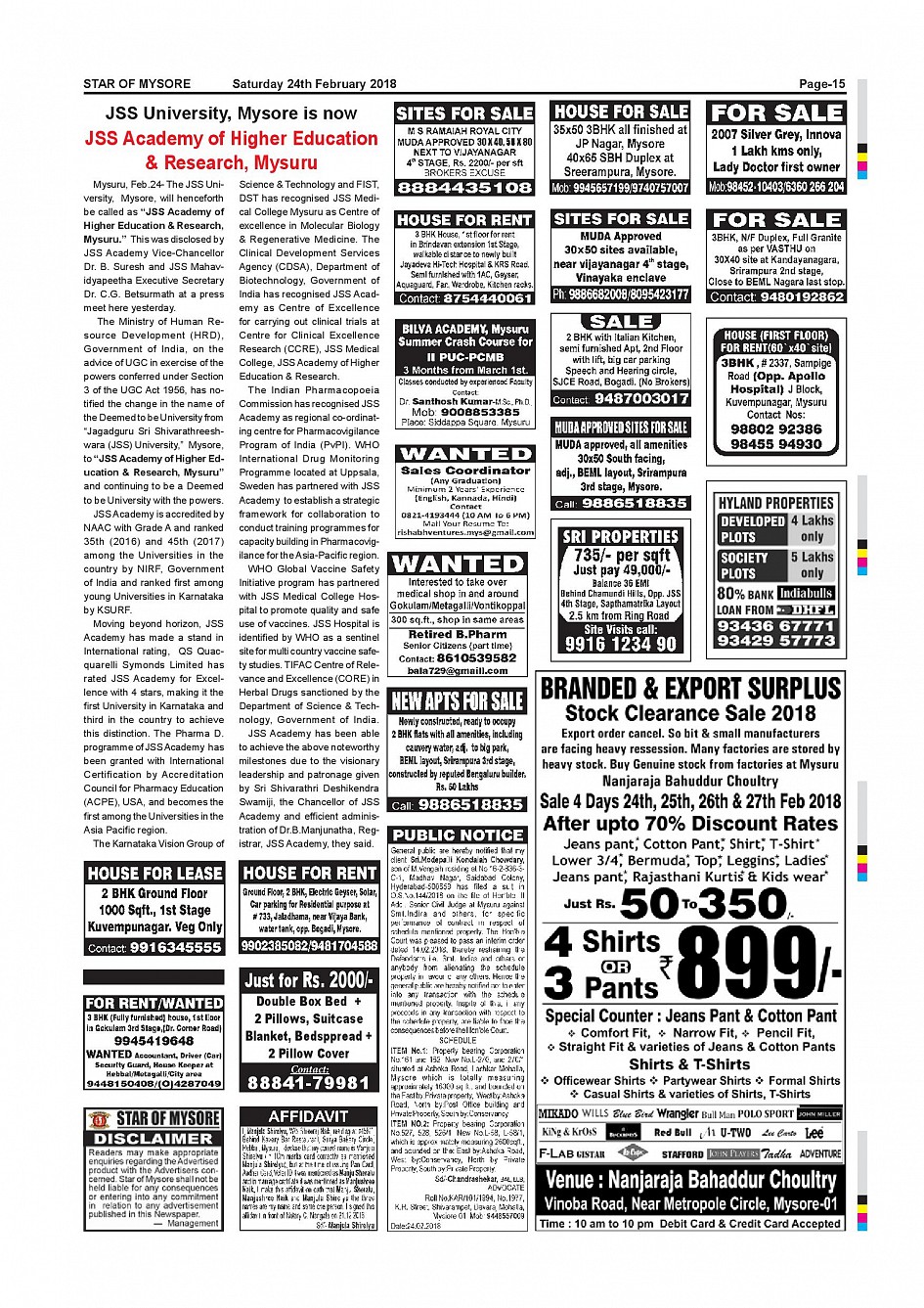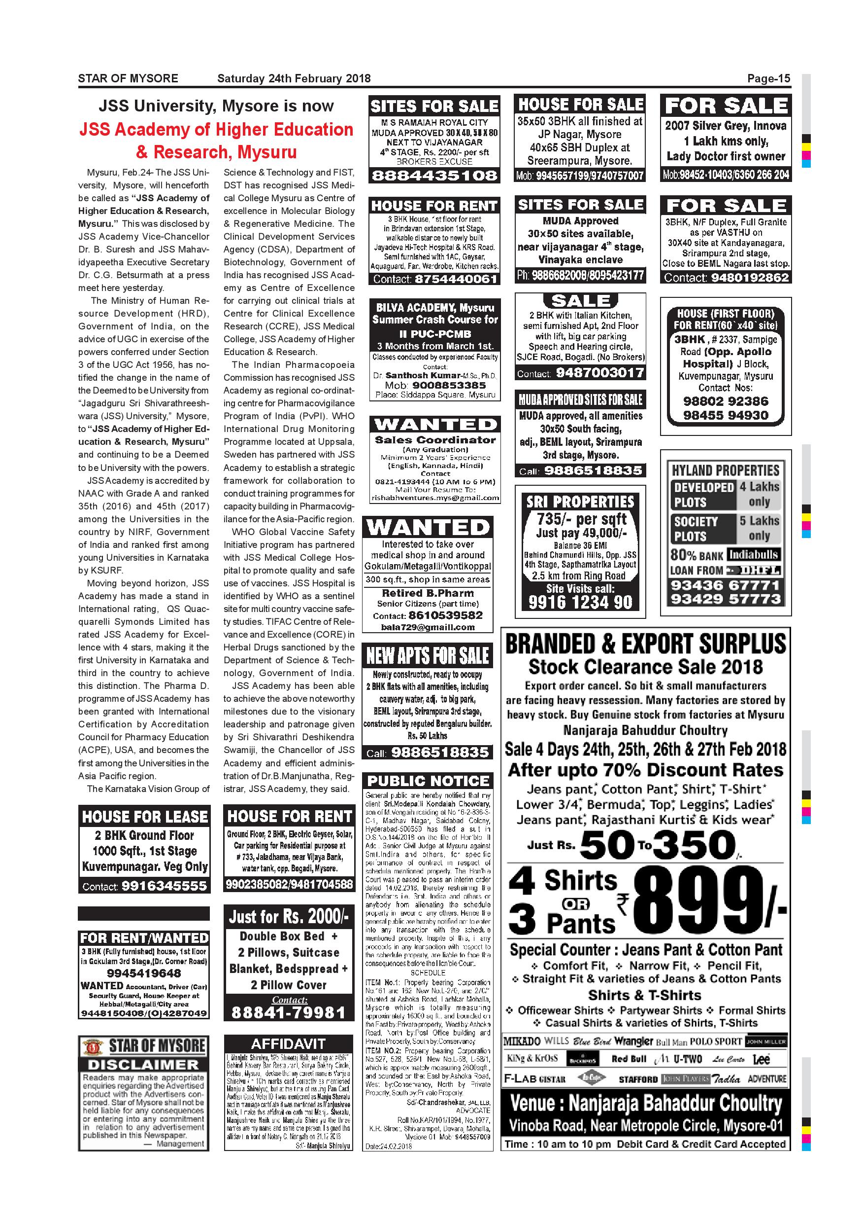 Star of Mysore Page: 14 February 24, 2018 << First << 14 >> Last >> Page 1Page 2Page 3Page 4Page 5Page 6Page 7Page 8Page 9Page 10Page 11Page 12Page 13Page 14Page 15Page 16Page 17Page 18Page 19 × Star of Mysore << First << 14 >> Last >> page-001page-002page-003page-004page-005page-006page-007page-008page-009page-010 & 011page-012page-013page-014page-015page-016page-017page-018page-019page-020 page-015