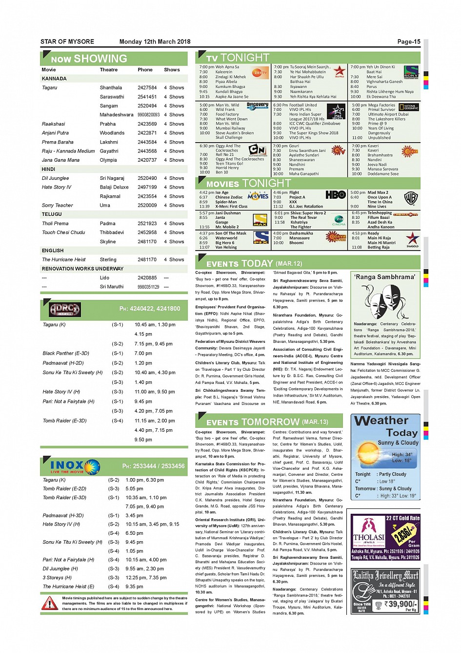 Star of Mysore Page: 15 March 12, 2018 << First << 15 >> Last >> Page 1Page 2Page 3Page 4Page 5Page 6Page 7Page 8Page 9Page 10Page 11Page 12Page 13Page 14Page 15Page 16 × Star of Mysore << First << 15 >> Last >> page-001page-002page-003page-004page-005page-006page-007page-008page-009page-010page-011page-012page-013page-014page-015page-016 page-015