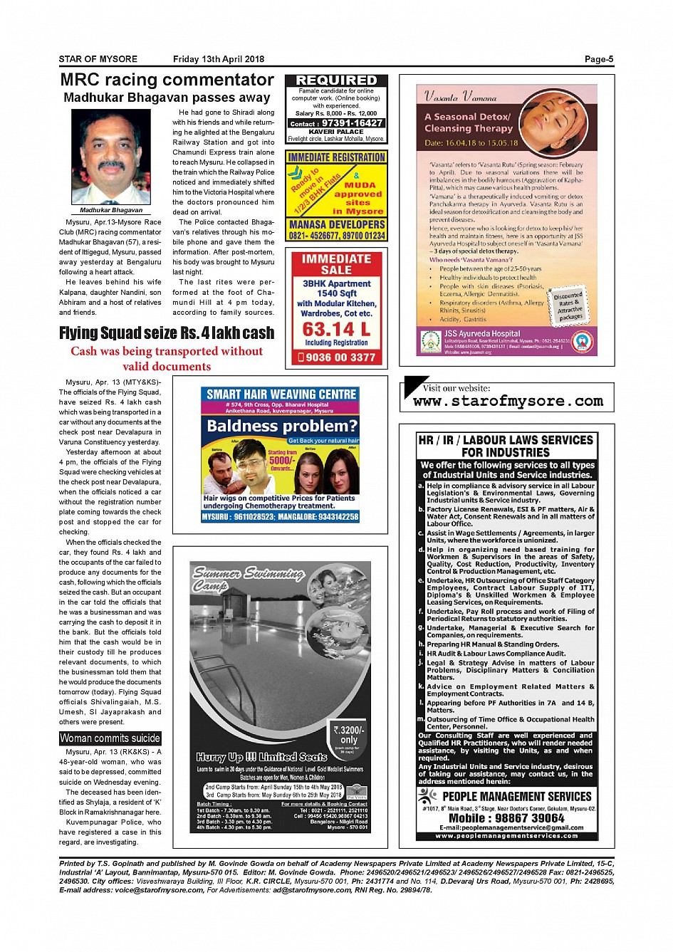 Star of Mysore Page: 5 April 13, 2018 << First << 5 >> Last >> Page 1Page 2Page 3Page 4Page 5Page 6Page 7Page 8Page 9Page 10Page 11Page 12Page 13Page 14Page 15Page 16 × Star of Mysore << First << 5 >> Last >> page-001page-002page-003page-004page-005page-006page-007page-008page-009page-010page-011page-012page-013page-014page-015page-016 page-005