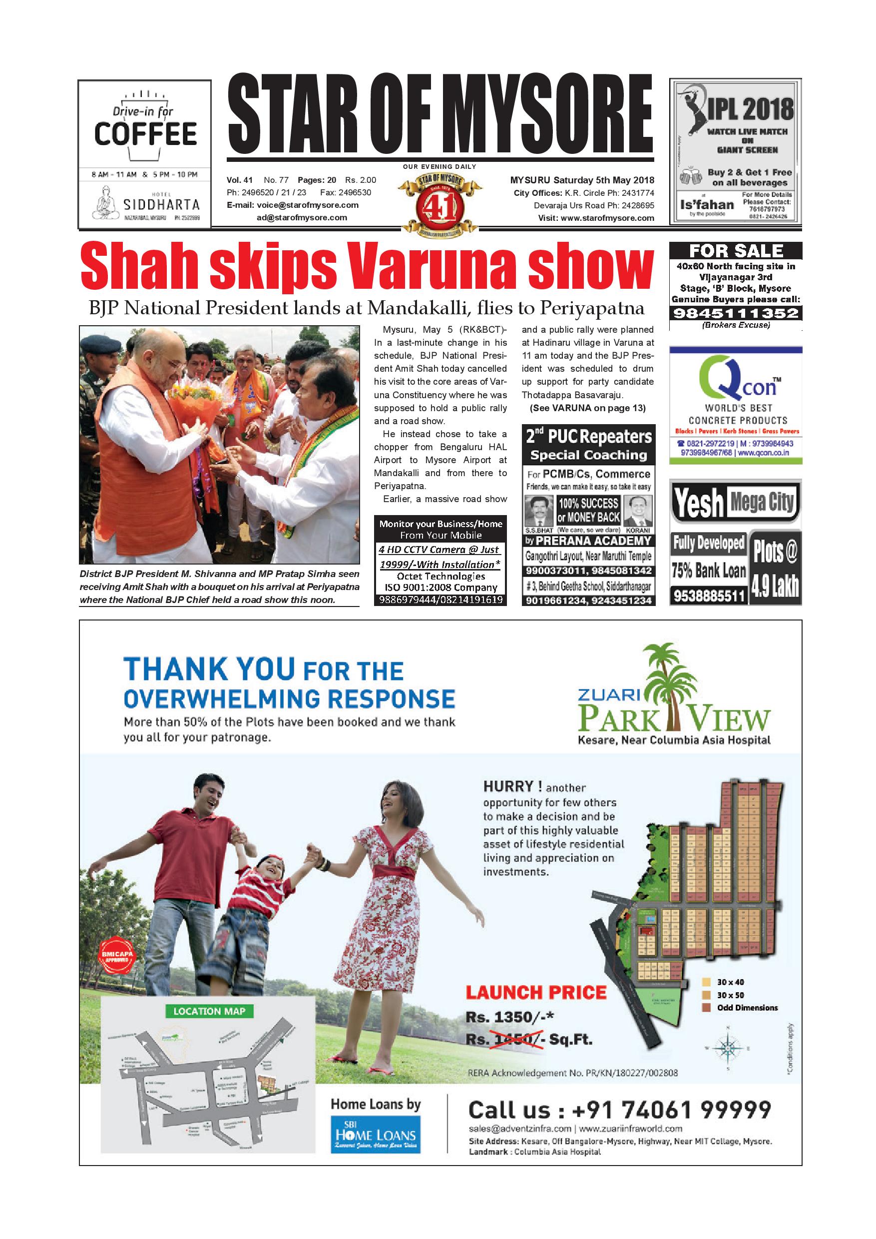 Star of Mysore May 05, 2018 << First << 1 >> Last >> Page 1Page 2Page 3Page 4Page 5Page 6Page 7Page 8Page 9Page 10Page 11Page 12Page 13Page 14Page 15Page 16Page 17Page 18Page 19 × Star of Mysore << First << 1 >> Last >> page-001page-002page-003page-004page-005page-006page-007page-008page-009page-010 & 011page-012page-013page-014page-015page-016page-017page-018page-019page-020 page-001