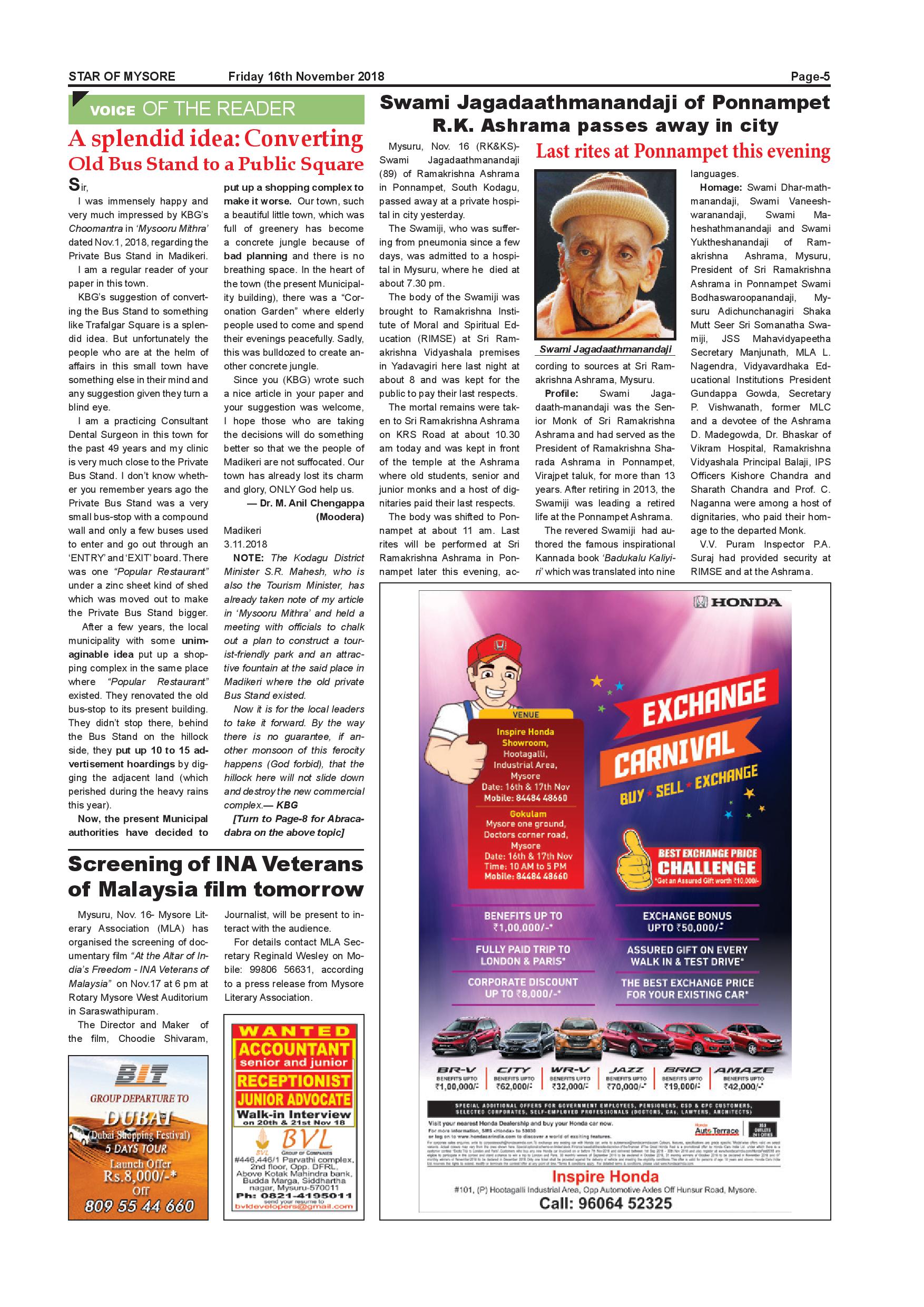 Star of Mysore Page: 5 November 16, 2018 << First << 5 >> Last >> Page 1Page 2Page 3Page 4Page 5Page 6Page 7Page 8Page 9Page 10Page 11Page 12Page 13Page 14Page 15Page 16 × Star of Mysore << First << 5 >> Last >> Page-001Page-002Page-003Page-004Page-005Page-006Page-007Page-008Page-009Page-010Page-011Page-012Page-013Page-014Page-015Page-016 Page-005