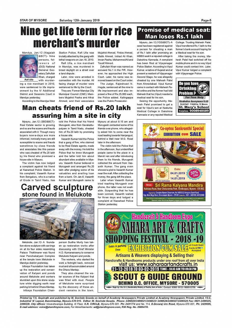 Star of Mysore Page: 5 January 12, 2019 << First << 5 >> Last >> Page 1Page 2Page 3Page 4Page 5Page 6Page 7Page 8Page 9Page 10Page 11Page 12Page 13Page 14Page 15Page 16Page 17Page 18Page 19 × Star of Mysore << First << 5 >> Last >> Page-001Page-002Page-003Page-004Page-005Page-006Page-007Page-008Page-009Page-010-011Page-012Page-013Page-014Page-015Page-016Page-017Page-018Page-019Page-020 Page-005