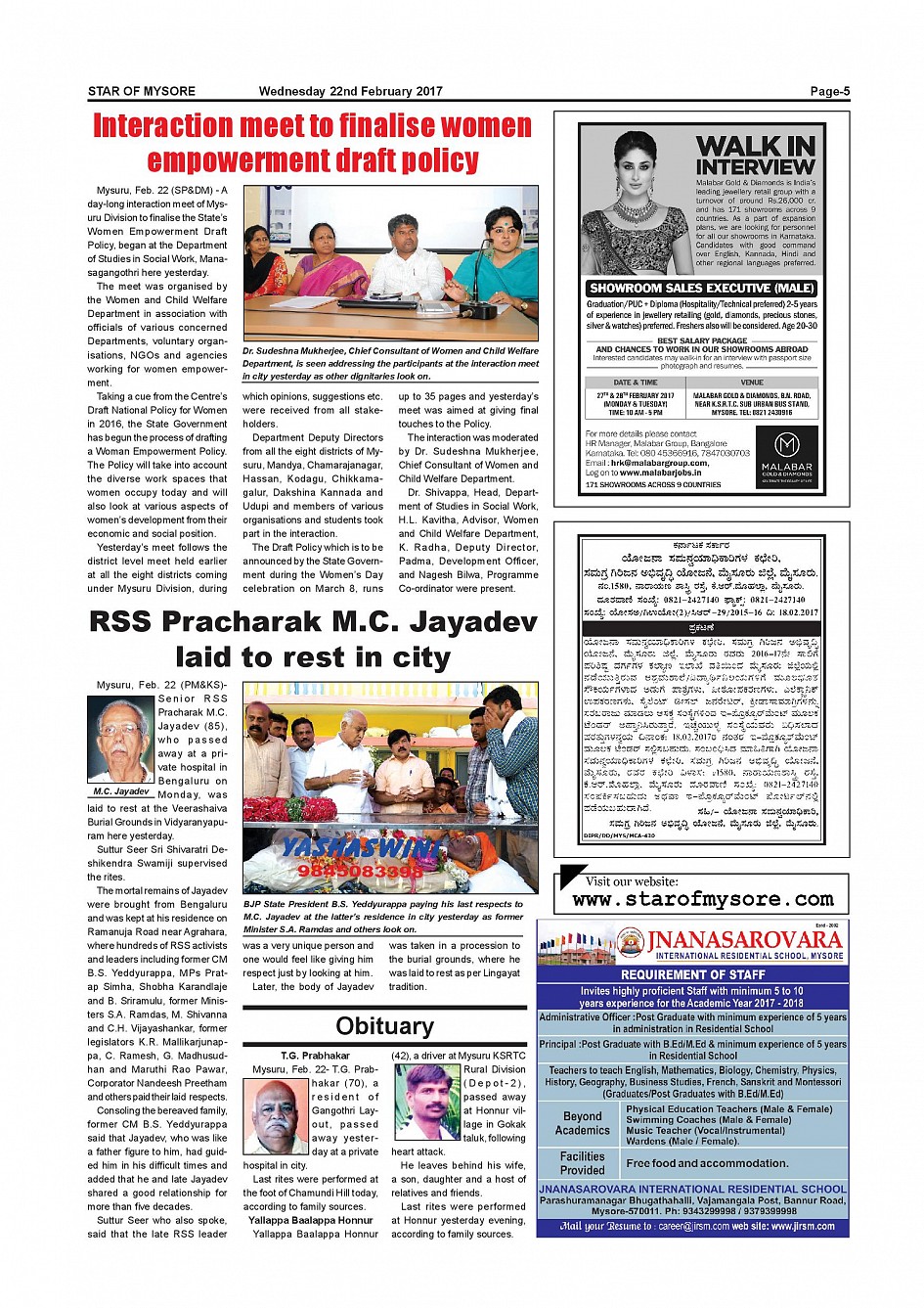 Star of Mysore Page: 5 February 22, 2017 << First << 5 >> Last >> Page 1Page 2Page 3Page 4Page 5Page 6Page 7Page 8Page 9Page 10Page 11Page 12Page 13Page 14Page 15 × Star of Mysore << First << 5 >> Last >> page1page2page3page4page5page6page7page8-9page10page11page12page13page14page15page16 page5