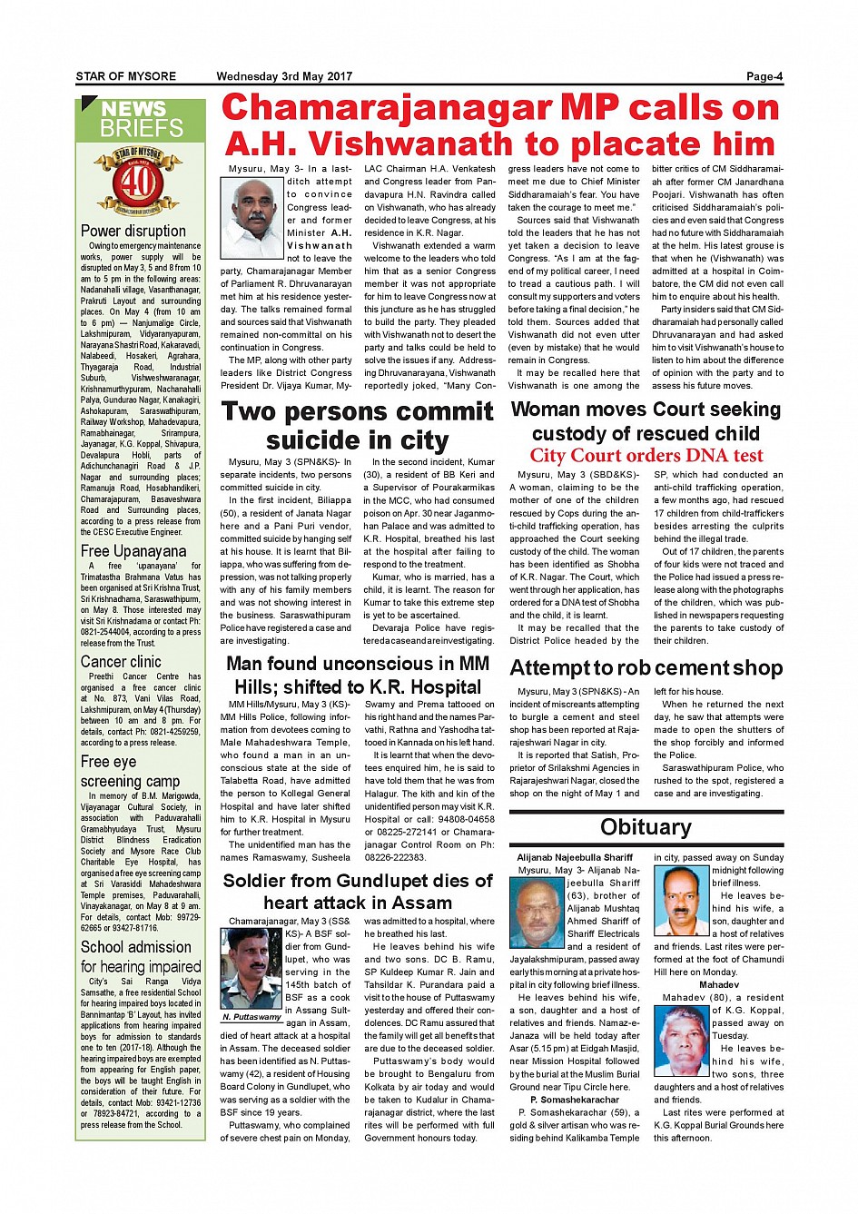 Star of Mysore Page: 4 May 03, 2017 << First << 4 >> Last >> Page 1Page 2Page 3Page 4Page 5Page 6Page 7Page 8Page 9Page 10Page 11Page 12Page 13Page 14Page 15Page 16 × Star of Mysore << First << 4 >> Last >> page-001page-002page-003page-004page-005page-006page-007page-008page-009page-010page-011page-012page-013page-014page-015page-016 page-004