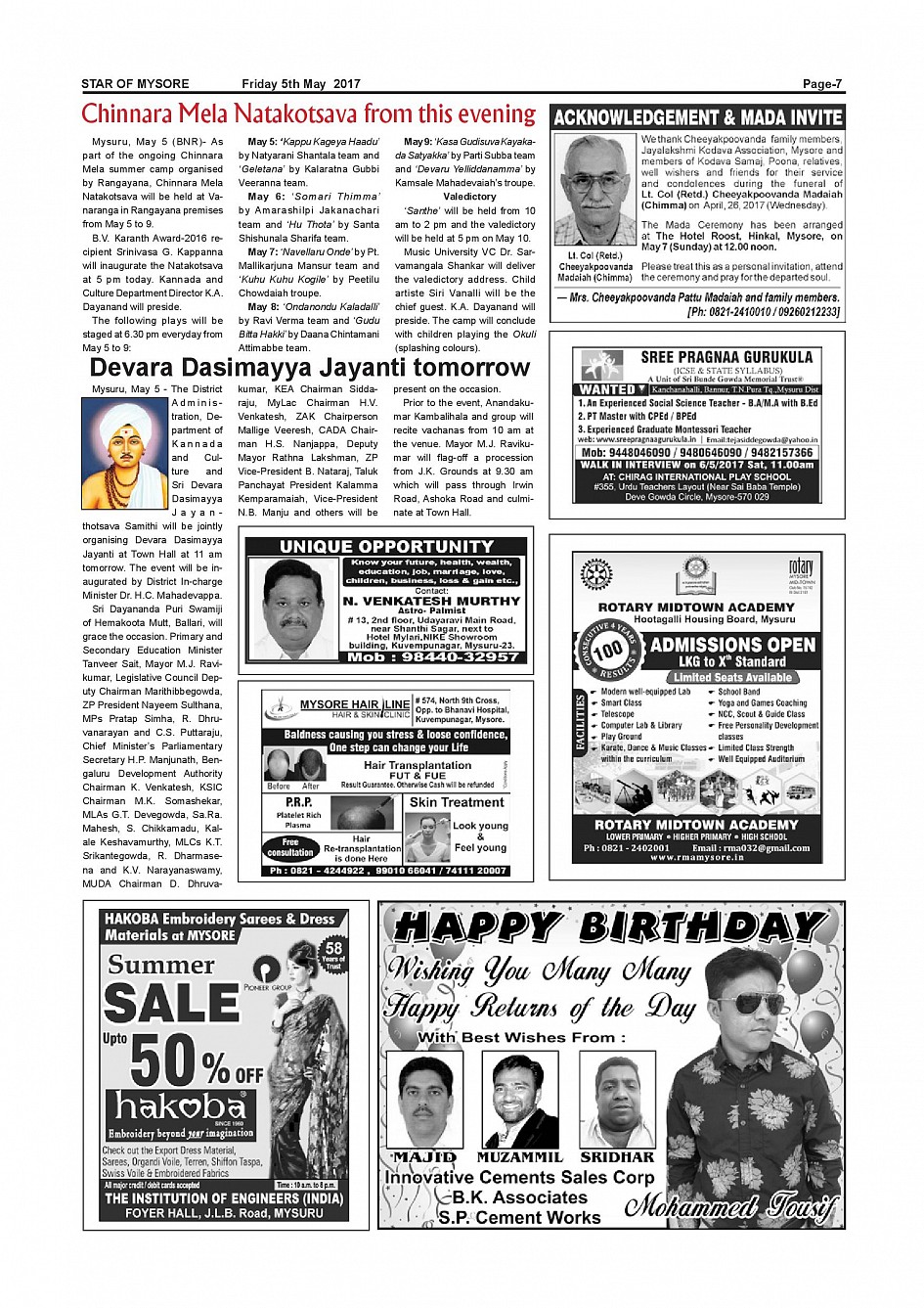 Star of Mysore Page: 7 May 05, 2017 << First << 7 >> Last >> Page 1Page 2Page 3Page 4Page 5Page 6Page 7Page 8Page 9Page 10Page 11Page 12Page 13Page 14Page 15Page 16 × Star of Mysore << First << 7 >> Last >> page-001page-002page-003page-004page-005page-006page-007page-008page-009page-010page-011page-012page-013page-014page-015page-016 page-007