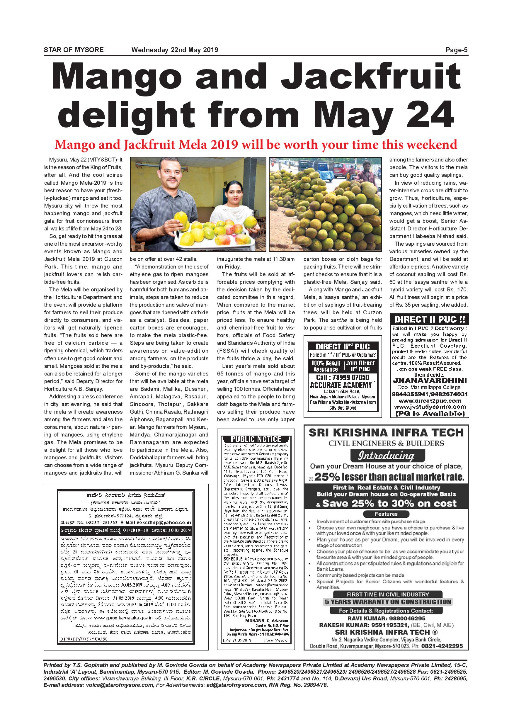Star of Mysore Page: 5 May 22, 2019 << First << 5 >> Last >> Page 1Page 2Page 3Page 4Page 5Page 6Page 7Page 8Page 9Page 10Page 11Page 12Page 13Page 14Page 15Page 16 × Star of Mysore << First << 5 >> Last >> Page-001Page-002Page-003Page-004Page-005Page-006Page-007Page-008Page-009Page-010Page-011Page-012Page-013Page-014Page-015Page-016 Page-005