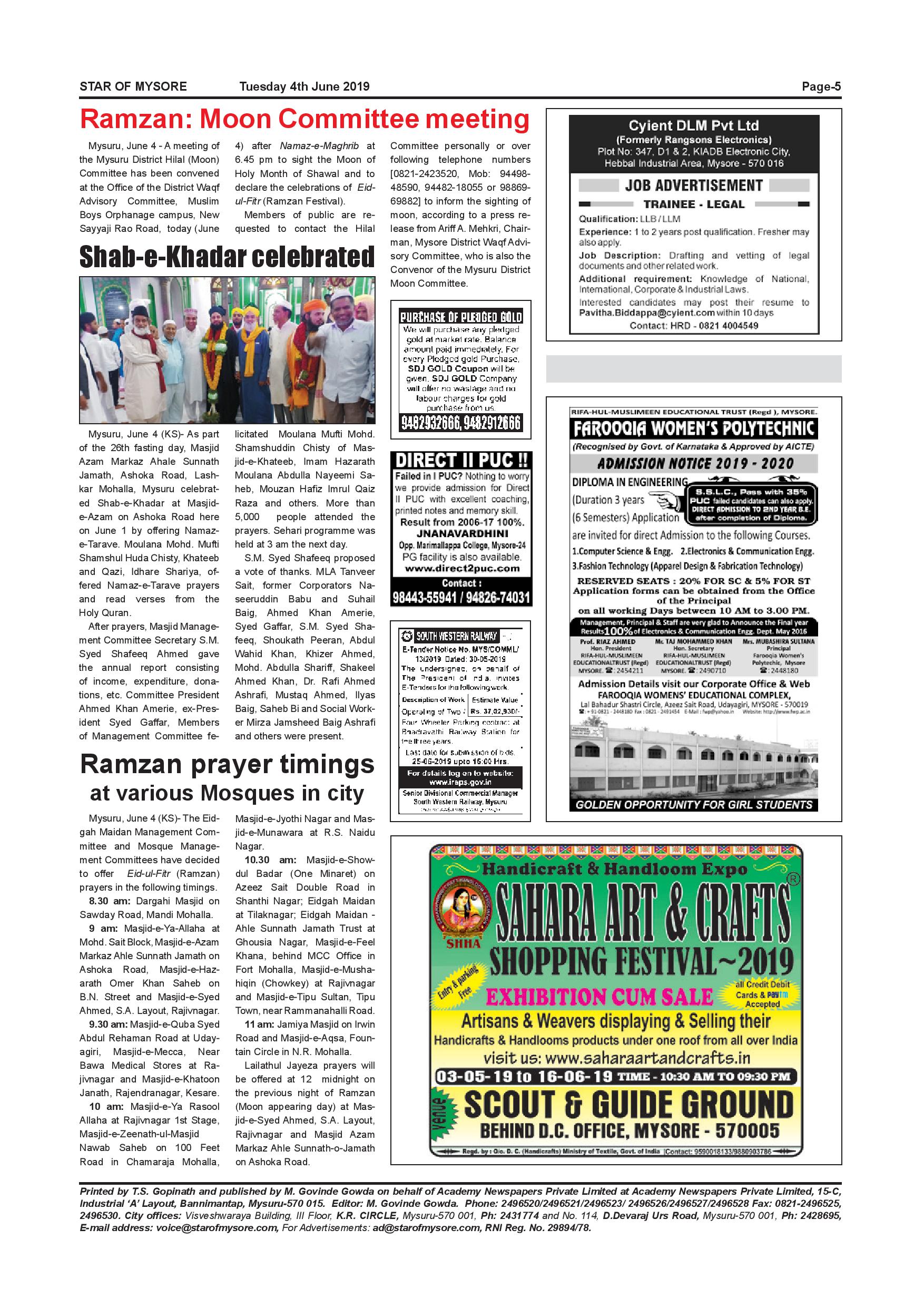 Star of Mysore Page: 5 June 04, 2019 << First << 5 >> Last >> Page 1Page 2Page 3Page 4Page 5Page 6Page 7Page 8Page 9Page 10Page 11Page 12Page 13Page 14Page 15Page 16 × Star of Mysore << First << 5 >> Last >> Page-001Page-002Page-003Page-004Page-005Page-006Page-007Page-008Page-009Page-010Page-011Page-012Page-013Page-014Page-015Page-016 Page-005