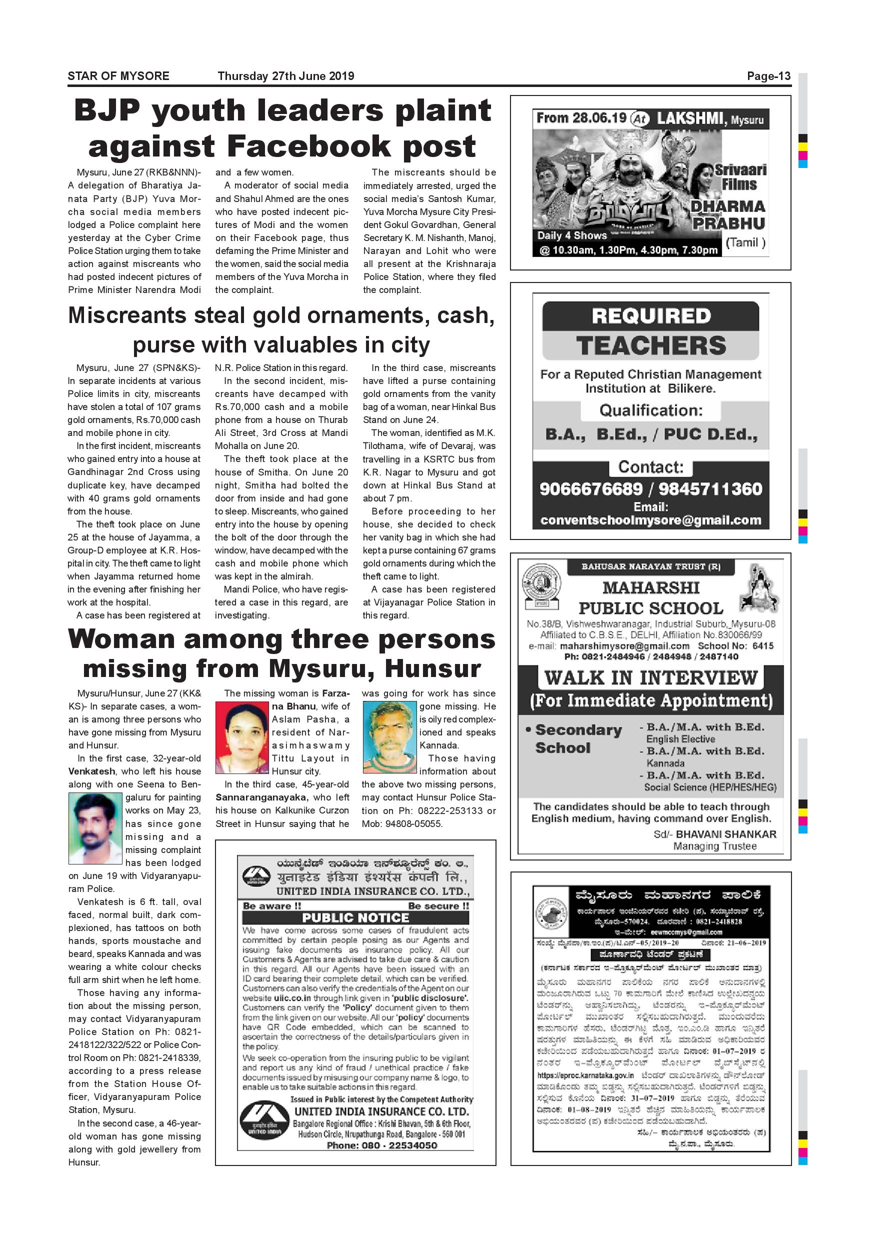 Star of Mysore Page: 13 June 27, 2019 << First << 13 >> Last >> Page 1Page 2Page 3Page 4Page 5Page 6Page 7Page 8Page 9Page 10Page 11Page 12Page 13Page 14Page 15Page 16 × Star of Mysore << First << 13 >> Last >> Page-001Page-002Page-003Page-004Page-005Page-006Page-007Page-008Page-009Page-010Page-011Page-012Page-013Page-014Page-015Page-016 Page-013