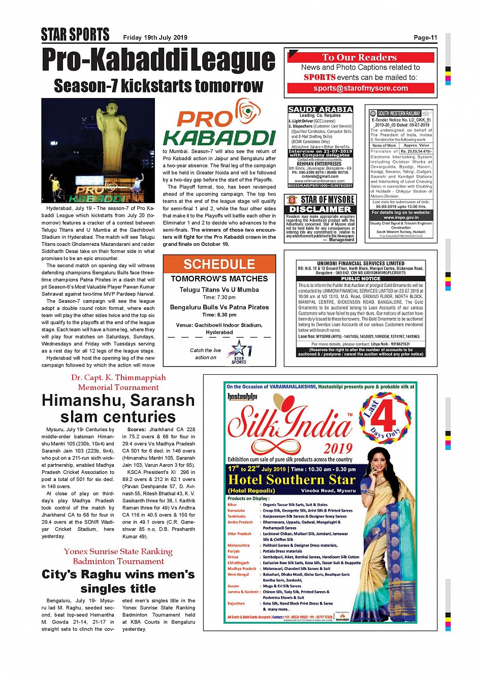 Star of Mysore Page: 11 July 19, 2019 << First << 11 >> Last >> Page 1Page 2Page 3Page 4Page 5Page 6Page 7Page 8Page 9Page 10Page 11Page 12Page 13Page 14Page 15Page 16 × Star of Mysore << First << 11 >> Last >> Page-001Page-002Page-003Page-004Page-005Page-006Page-007Page-008Page-009Page-010Page-011Page-012Page-013Page-014Page-015Page-016 Page-011