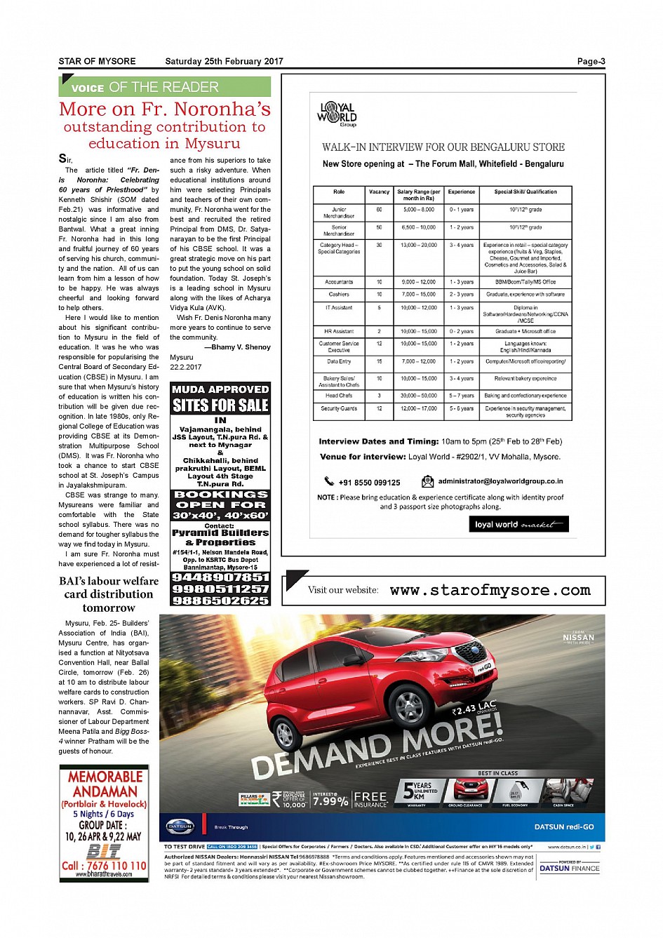 Star of Mysore Page: 3 February 25, 2017 << First << 3 >> Last >> Page 1Page 2Page 3Page 4Page 5Page 6Page 7Page 8Page 9Page 10Page 11Page 12Page 13Page 14Page 15 × Star of Mysore << First << 3 >> Last >> page-001page-002page-003page-004page-005page-006page-007page-08&09page-010page-011page-013page-012page-014page-016page-015 page-003