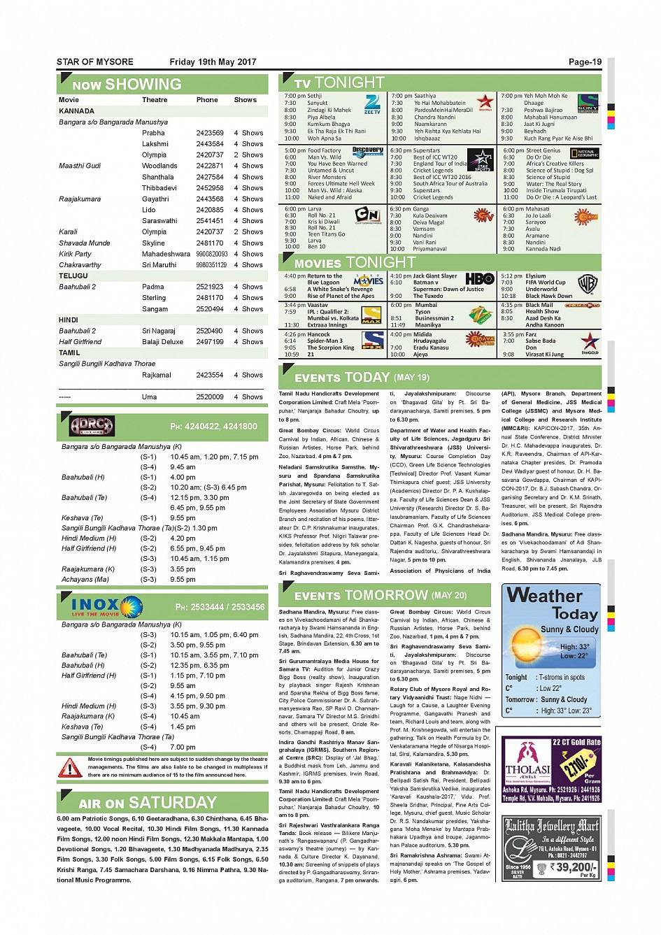 Star of Mysore Page: 18 May 19, 2017 << First << 18 >> Last >> Page 1Page 2Page 3Page 4Page 5Page 6Page 7Page 8Page 9Page 10Page 11Page 12Page 13Page 14Page 15Page 16Page 17Page 18Page 19 × Star of Mysore << First << 18 >> Last >> page-001page-002page-003page-004page-005page-006page-007page-008page-009page-010 & 011page-012page-013page-014page-015page-016page-017page-018page-019page-020 page-019
