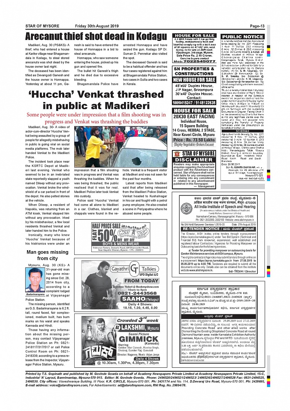 Star of Mysore Page: 13 August 30, 2019 << First << 13 >> Last >> Page 1Page 2Page 3Page 4Page 5Page 6Page 7Page 8Page 9Page 10Page 11Page 12Page 13Page 14Page 15Page 16 × Star of Mysore << First << 13 >> Last >> page-001page-002page-003page-004page-005page-006page-007page-008page-009page-010page-011page-012page-013page-014page-015page-016 page-013
