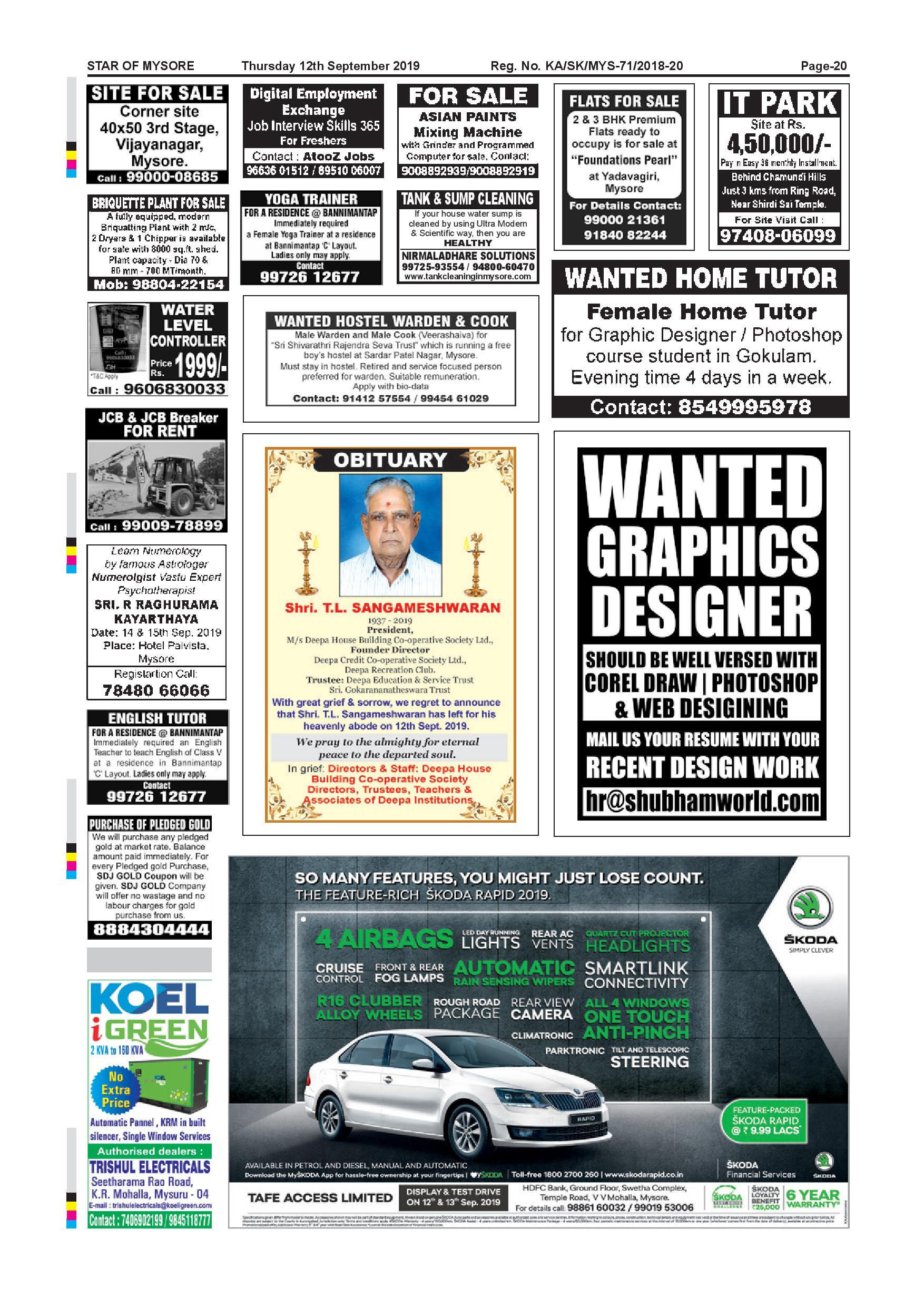 Star of Mysore Page: 20 September 12, 2019 << First << 20 >> Last >> Page 1Page 2Page 3Page 4Page 5Page 6Page 7Page 8Page 9Page 10Page 11Page 12Page 13Page 14Page 15Page 16Page 17Page 18Page 19Page 20 × Star of Mysore << First << 20 >> Last >> page-001page-002page-003page-004page-005page-006page-007page-008page-009page-010page-011page-012page-013page-014page-015page-016page-017page-018page-019page-020 page-020