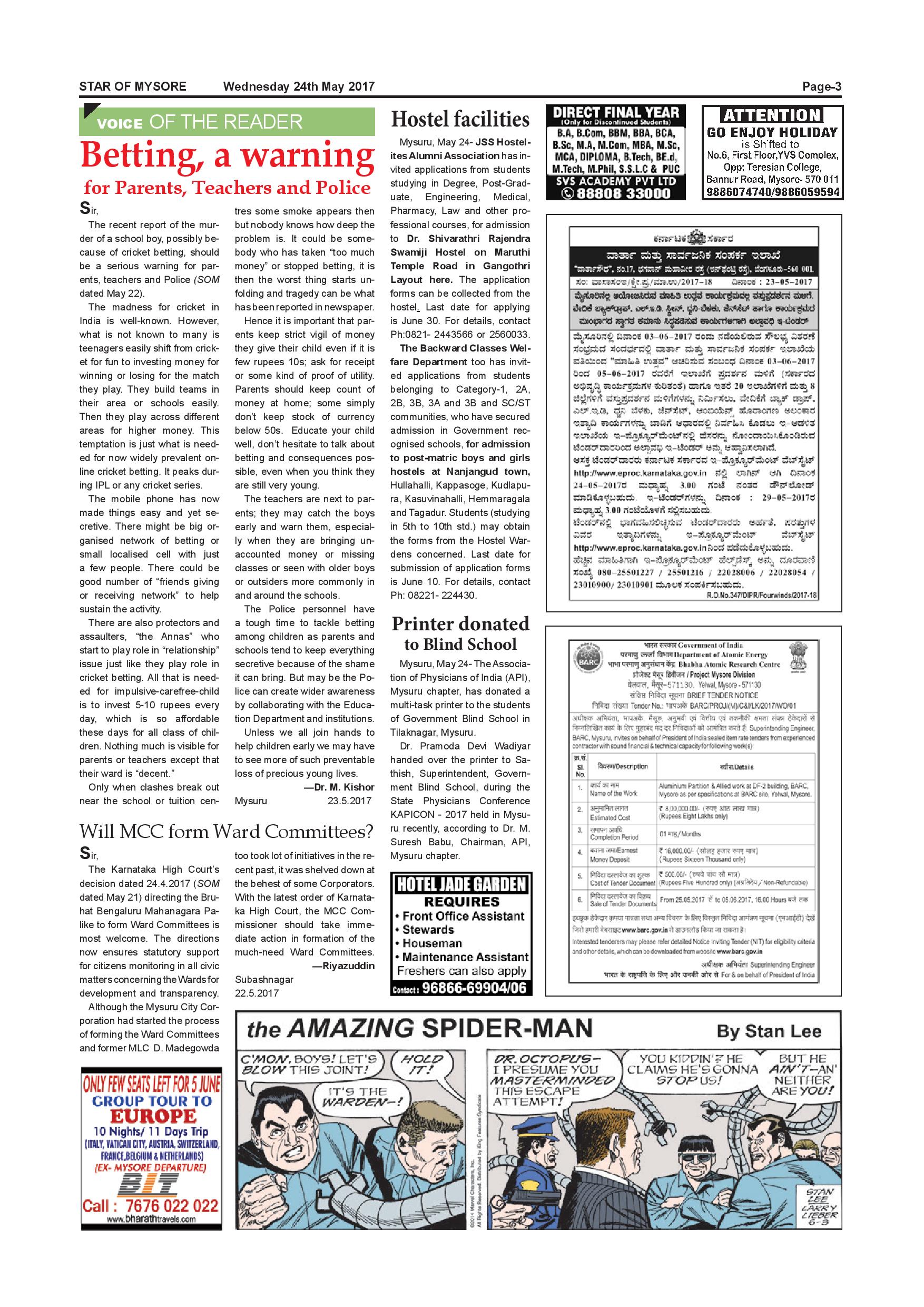 Star of Mysore Page: 3 May 24, 2017 << First << 3 >> Last >> Page 1Page 2Page 3Page 4Page 5Page 6Page 7Page 8Page 9Page 10Page 11Page 12Page 13Page 14Page 15Page 16 × Star of Mysore << First << 3 >> Last >> page-001page-002page-003page-004page-005page-006page-007page-008page-009page-010page-011page-012page-013page-014page-015page-016 page-003