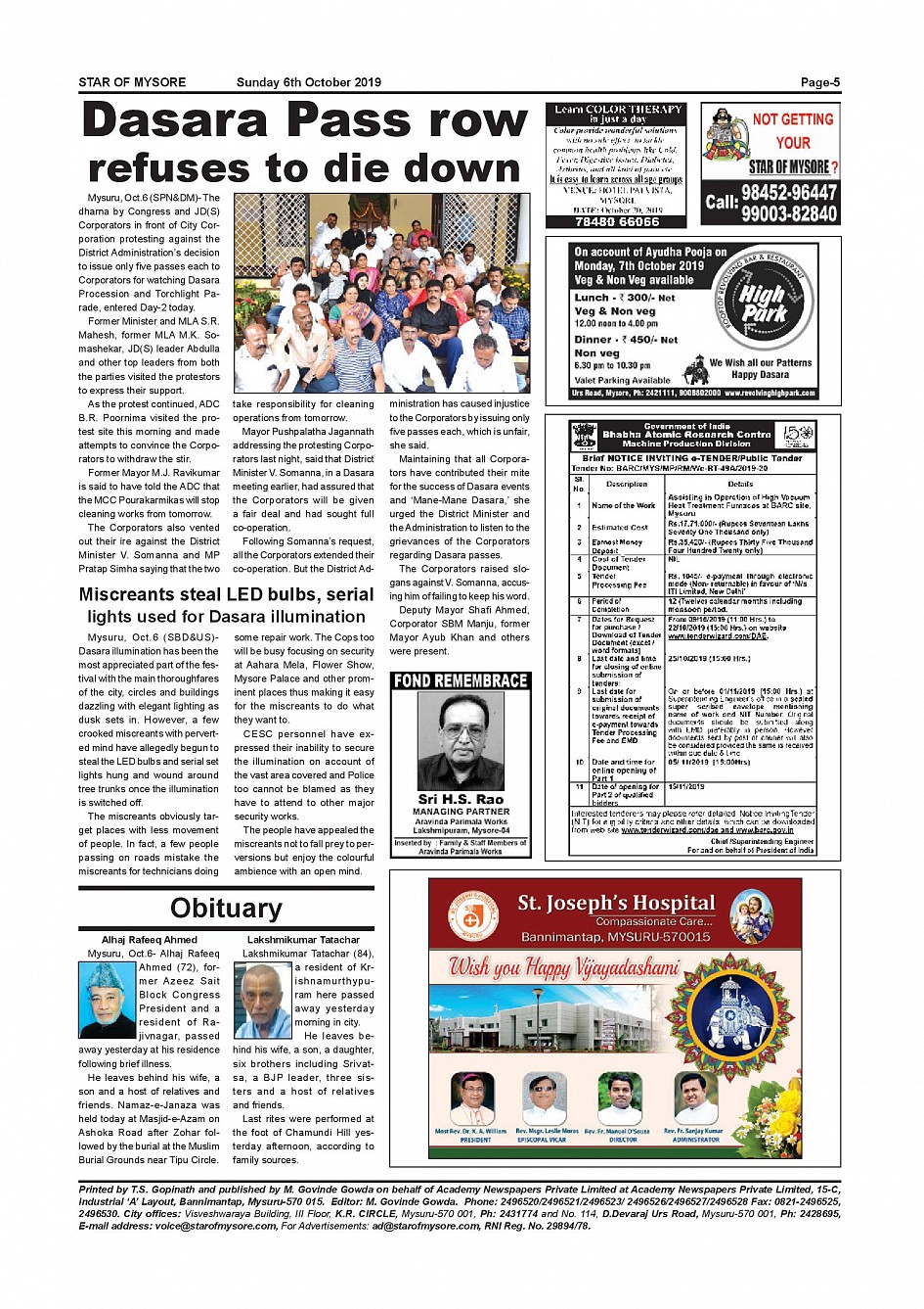Star of Mysore Page: 5 October 06, 2019 << First << 5 >> Last >> Page 1Page 2Page 3Page 4Page 5Page 6Page 7Page 8Page 9Page 10Page 11Page 12Page 13Page 14Page 15 × Star of Mysore << First << 5 >> Last >> page-001page-002page-003page-004page-005page-006page-007page-008 & 009page-010page-011page-012page-013page-014page-015page-016 page-005
